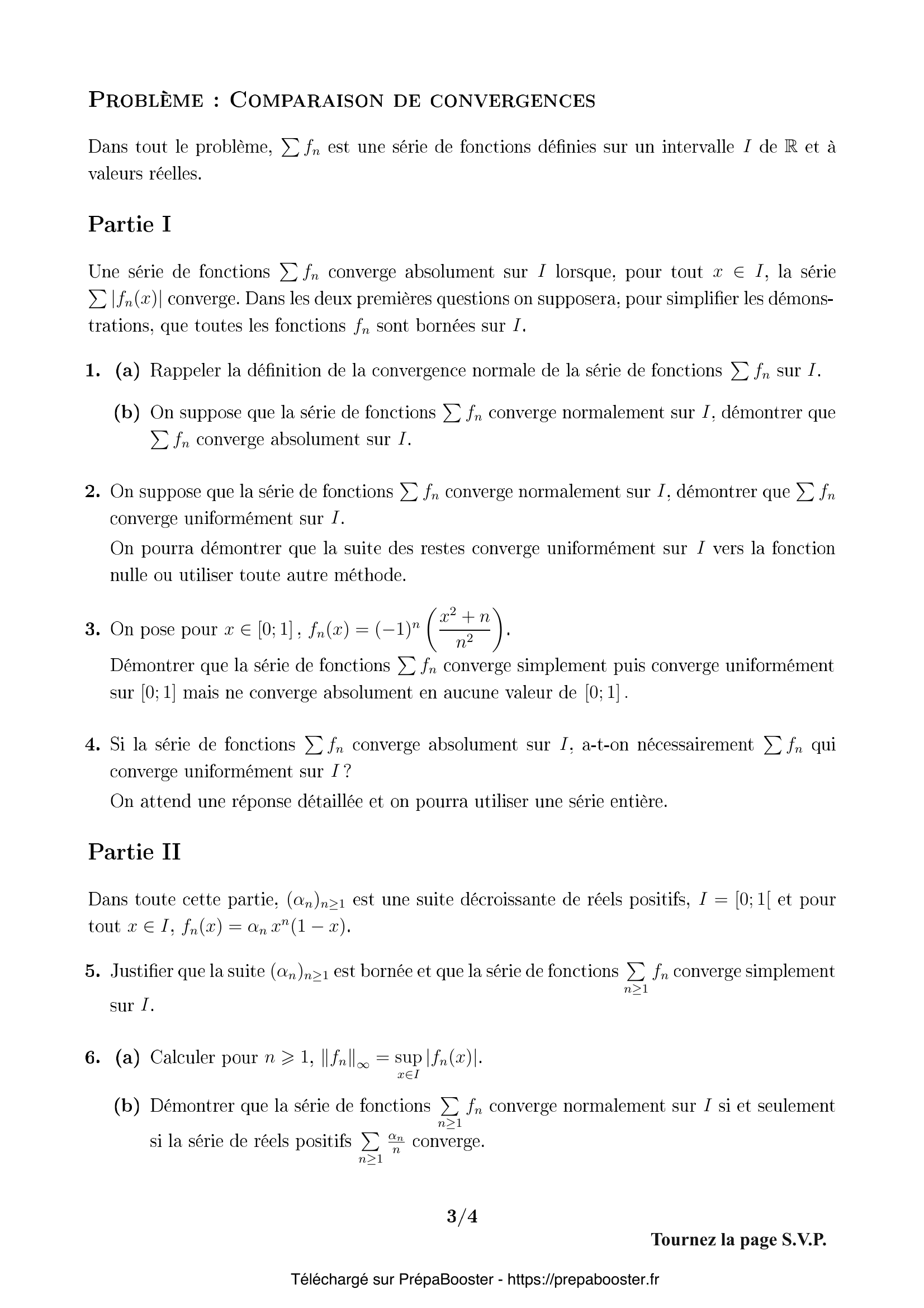 17. (b) Si on suppose que la suite $(\alpha_n)_{n\geq 1}$ converge vers $0$, démontrer que la série de fonctions $\sum_{n \geq 1} f_n$ converge uniformément sur $I$.\\