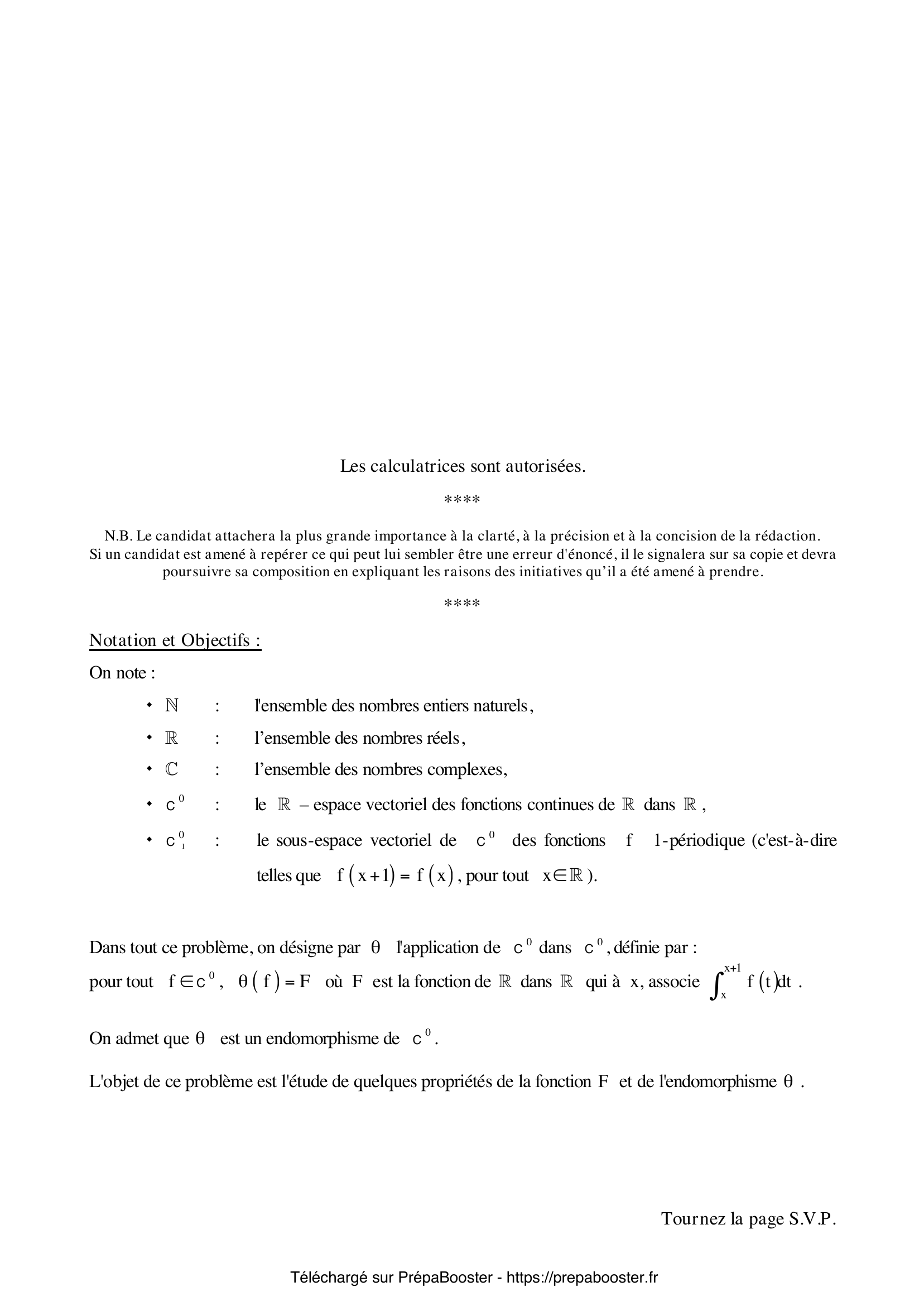 Dans ce sujet, tu rencontres des notions fondamentales comme l’intégration, les fonctions de classe C^1, les propriétés des fonctions paires et impaires, l’étude de la continuité, les séries, les espaces vectoriels de fonctions, ou encore la diagonalisation d’endomorphismes. On y croise aussi des questions autour de la limite, de la périodicité et de l’intégrabilité sur ℝ, autant de points clés pour réussir l’épreuve du CCINP en filière PSI.