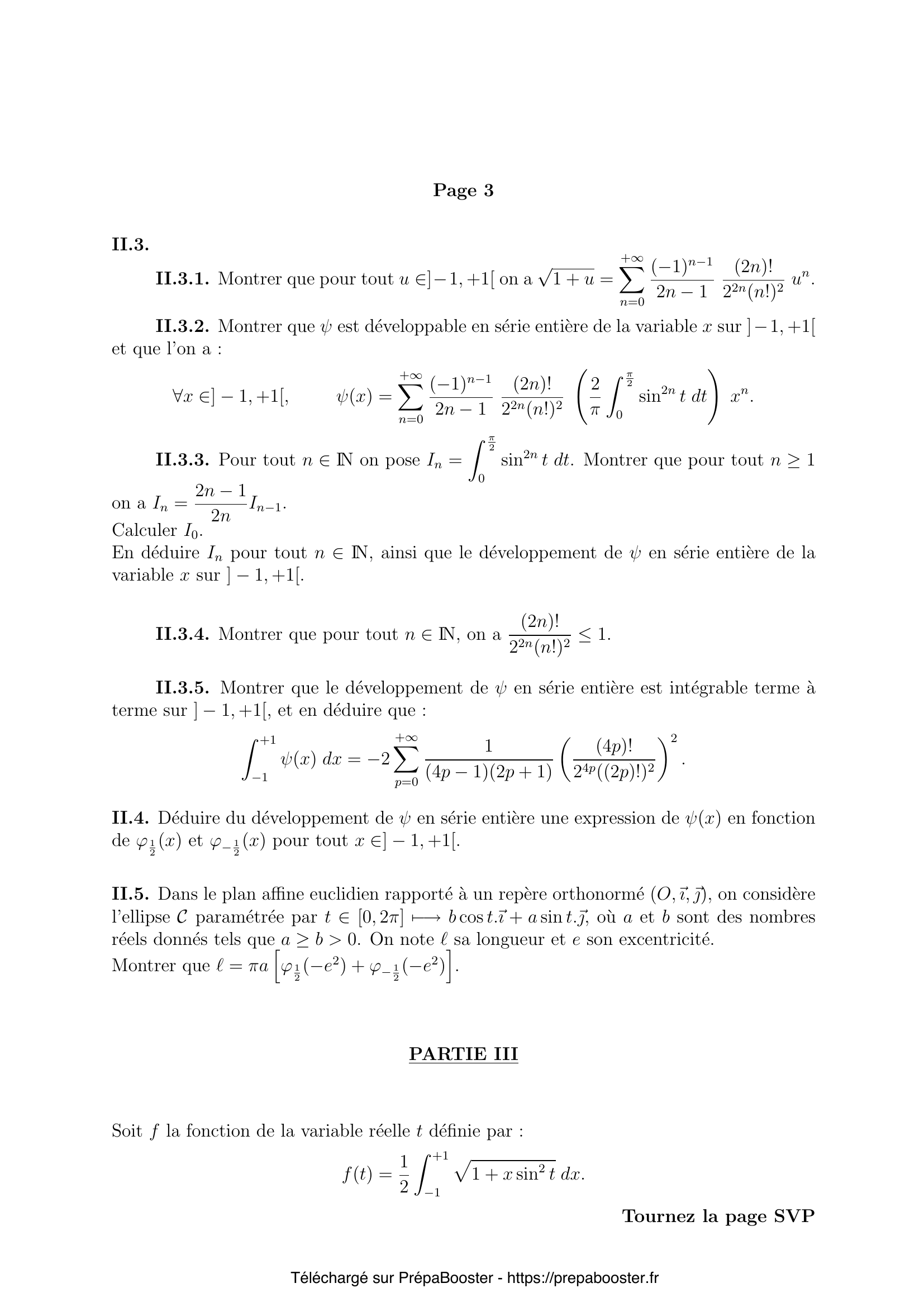 Cette intégrale, appelée parfois ‘intégrale elliptique’, intervient dans le calcul de longueurs d’ellipses (problème classique en mécanique et en optique), mais aussi en électromagnétisme ou en probabilités. Savoir la développer en série entière, c’est pouvoir approximer des quantités physiques complexes à partir des mathématiques et relier directement théorie et application. Pour voir le détail des calculs, pense à débloquer les corrigés sur Prépa Booster !