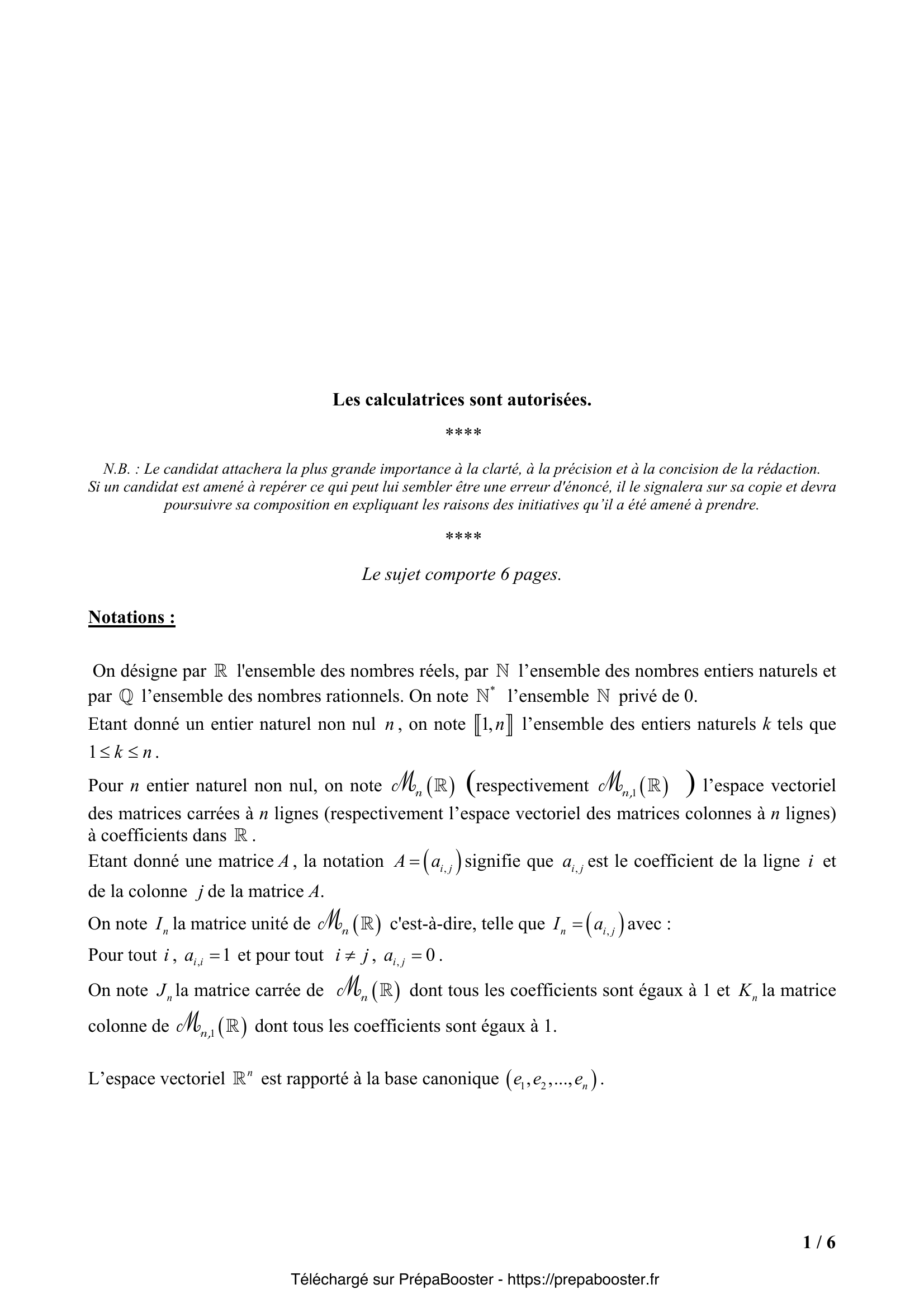 La matrice tout-un J_n est très utile car elle permet de simplifier les calculs en regroupant certains termes lorsque tu travailles sur des matrices à coefficients constants. Elle intervient souvent dans les questions de polynômes annulateurs ou de diagonalisation, et permet d’illustrer des techniques de réduction ou de décomposition matricielle. Retrouve son usage détaillé dans les corrigés accessibles après déblocage sur Prépa Booster.