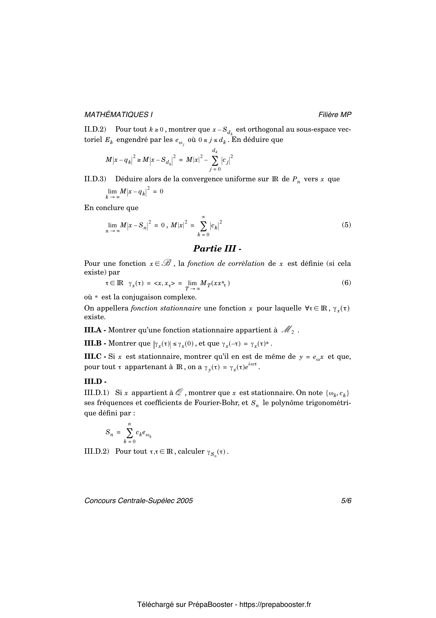 Pour réussir ce type de sujet, maîtrise les définitions fondamentales (moyenne, convergence uniforme, produit scalaire généralisé, stationnarité). N’hésite pas à bien t’entraîner sur les exercices des annales, à écrire des exemples et contre-exemples de fonctions, à manier la manipulation des séries de Fourier et à vérifier scrupuleusement toutes les hypothèses d’utilisation des propriétés. Pour aller plus loin et accéder à des corrigés détaillés de cet écrit ainsi qu’à un dashbord personnalisé pour suivre ta progression, tu peux débloquer les corrigés sur Prépa Booster !