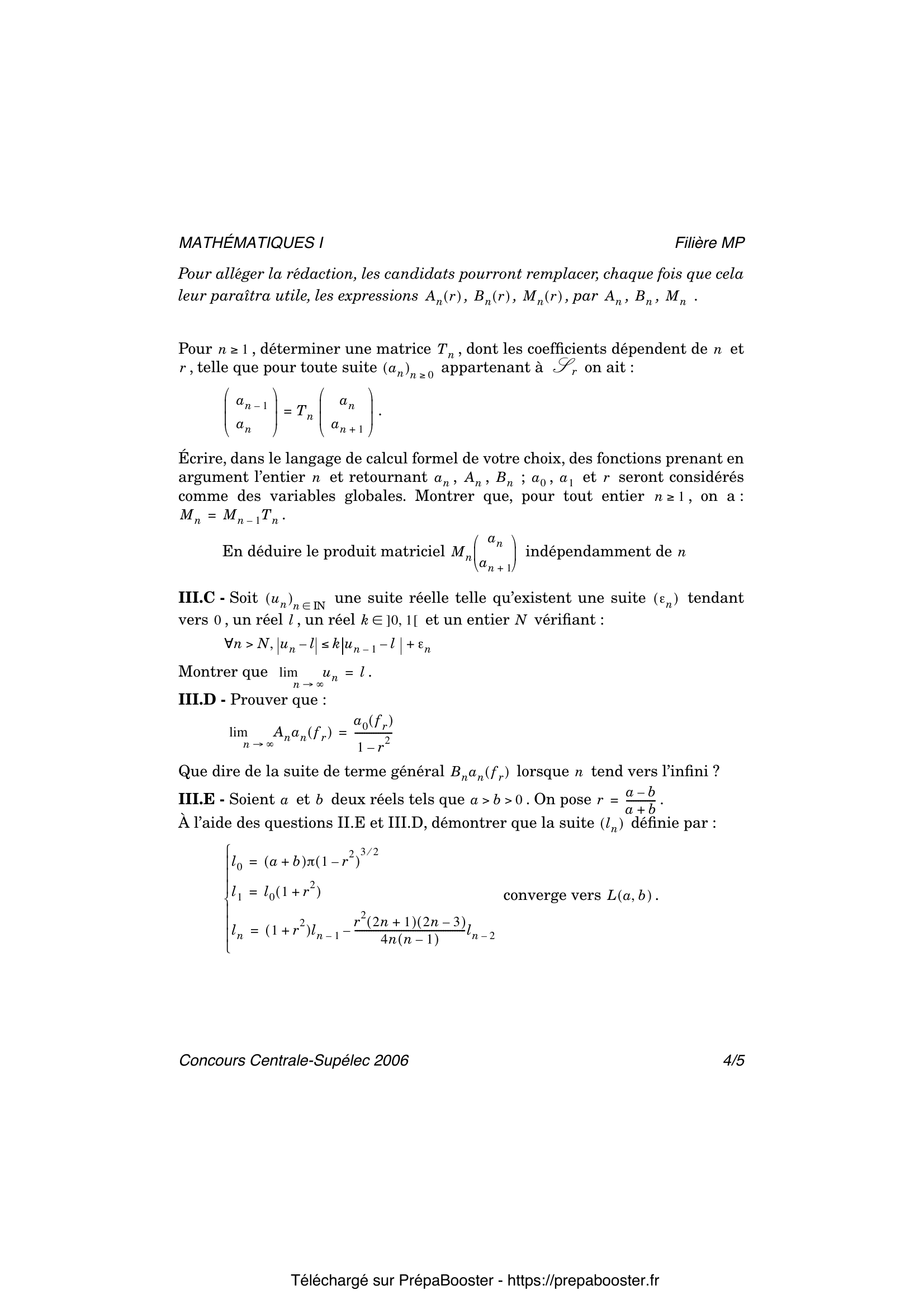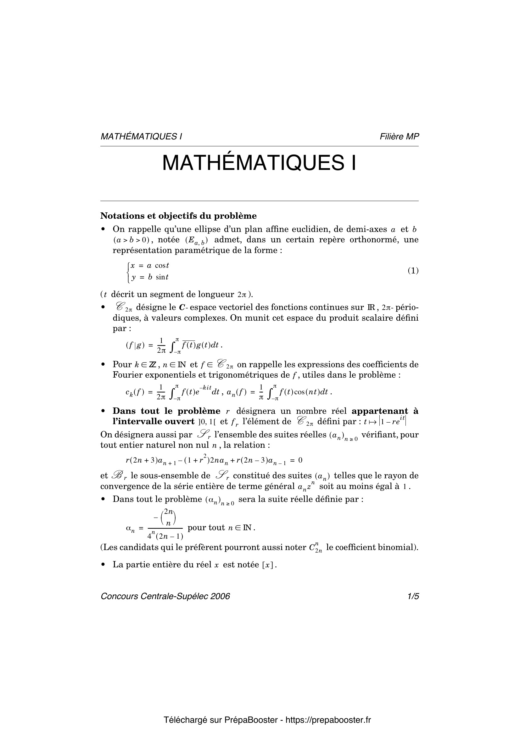 Pour devenir efficace, alterne l’entraînement sur des sujets de concours corrigés, comme celui de 2006 ici, et sur des exercices de rédaction rapide de preuve. Travaille les questions d’applications directes du cours, mais aussi celles obligeant à mobiliser plusieurs techniques (analyse, algèbre, méthodes numériques). Débloque l’accès au corrigé sur Prépa Booster pour avoir des explications détaillées, des astuces et ton tableau de bord personnalisé, idéal pour progresser !