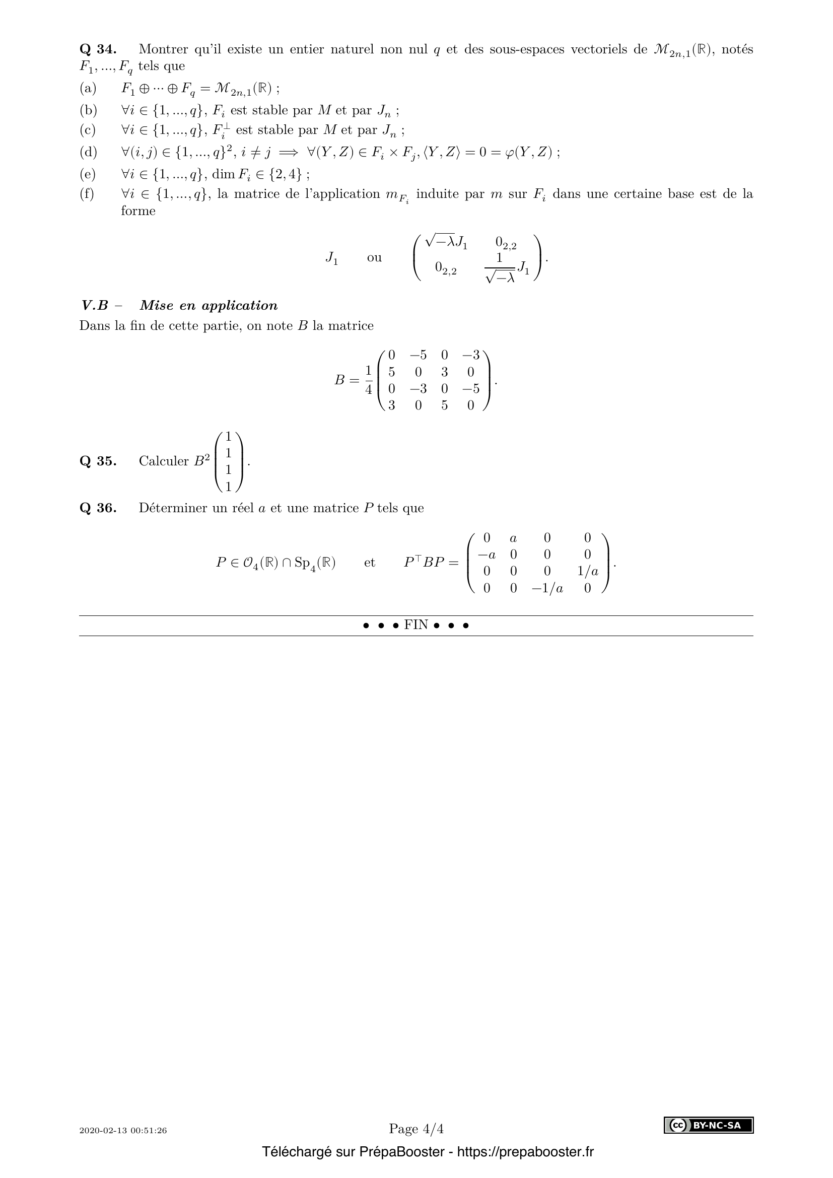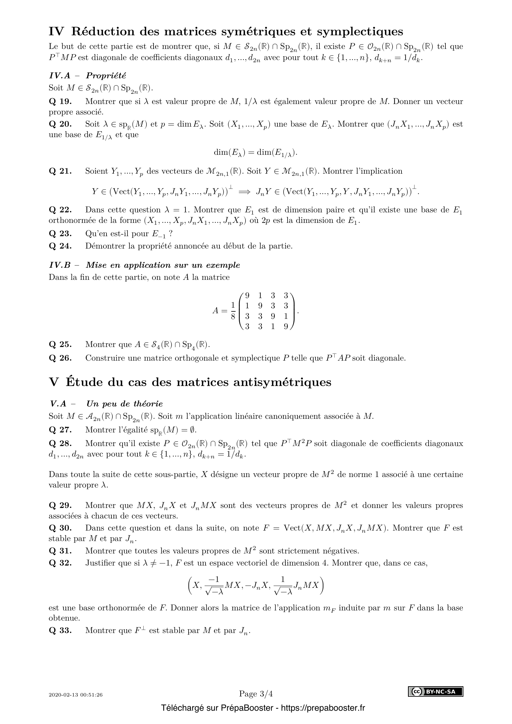 Montrer qu’il existe $P \in \mathcal{O}_{2n}(\mathbb{R}) \cap Sp_{2n}(\mathbb{R})$ tel que $P^\top M^2 P$ soit diagonale de coefficients diagonaux $d_1, \dots, d_{2n}$ avec pour tout $k \in \{1, \dots, n\}, d_{k+n} = 1/d_k$.