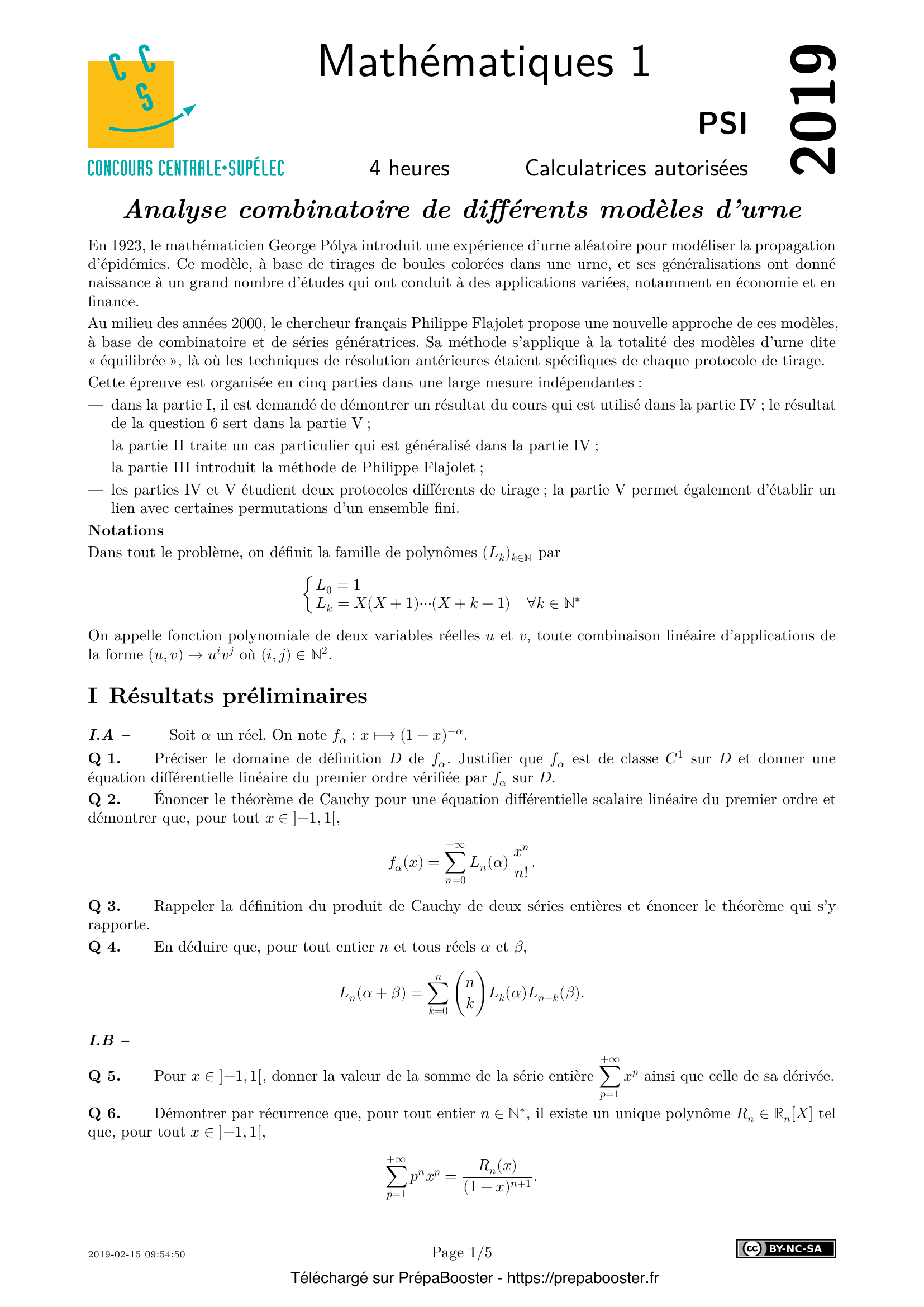 6. Démontrer par récurrence que, pour tout entier $n \in \mathbb{N}^*$, il existe un unique polynôme $R_n \in \mathbb{R}_n[X]$ tel que, pour tout $x \in ]-1, 1[$,