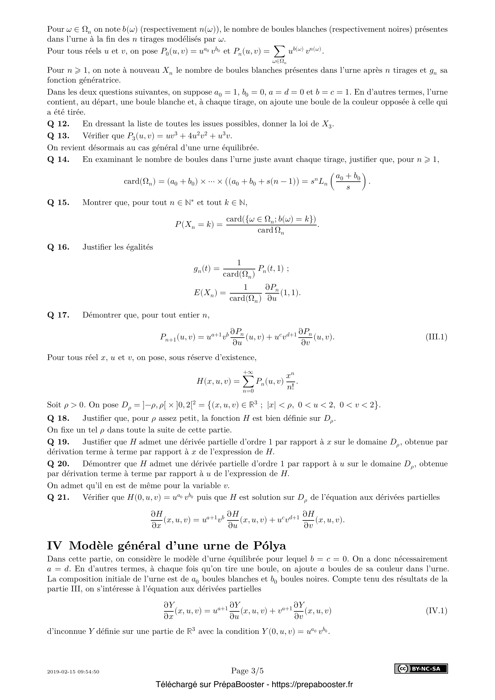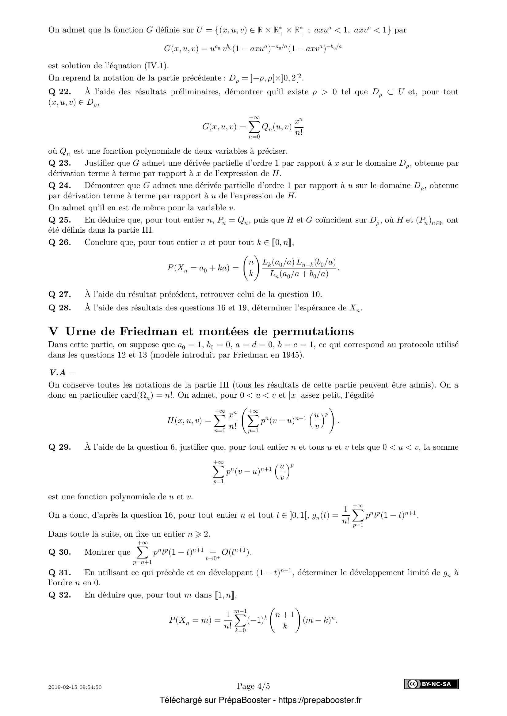 21. Vérifier que $H(0, u, v) = u^{a_0}v^{b_0}$ puis que $H$ est solution sur $D_\rho$ de l’équation aux dérivées partielles