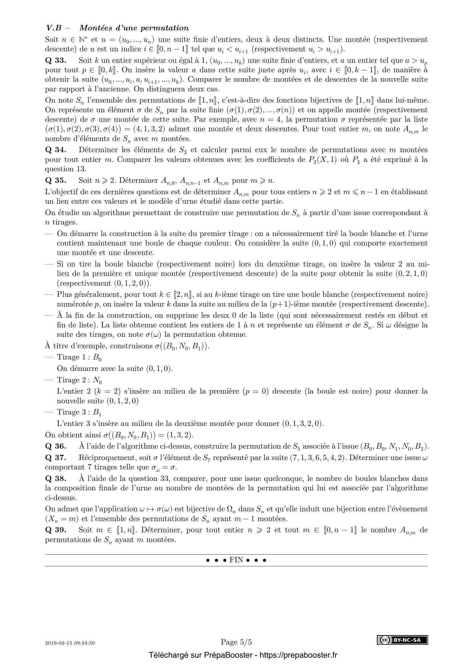 36. À l’aide de l’algorithme ci-dessus, construire la permutation de $S_5$ associée à l’issue $(B_0, B_0, N_1, N_0, B_2)$.