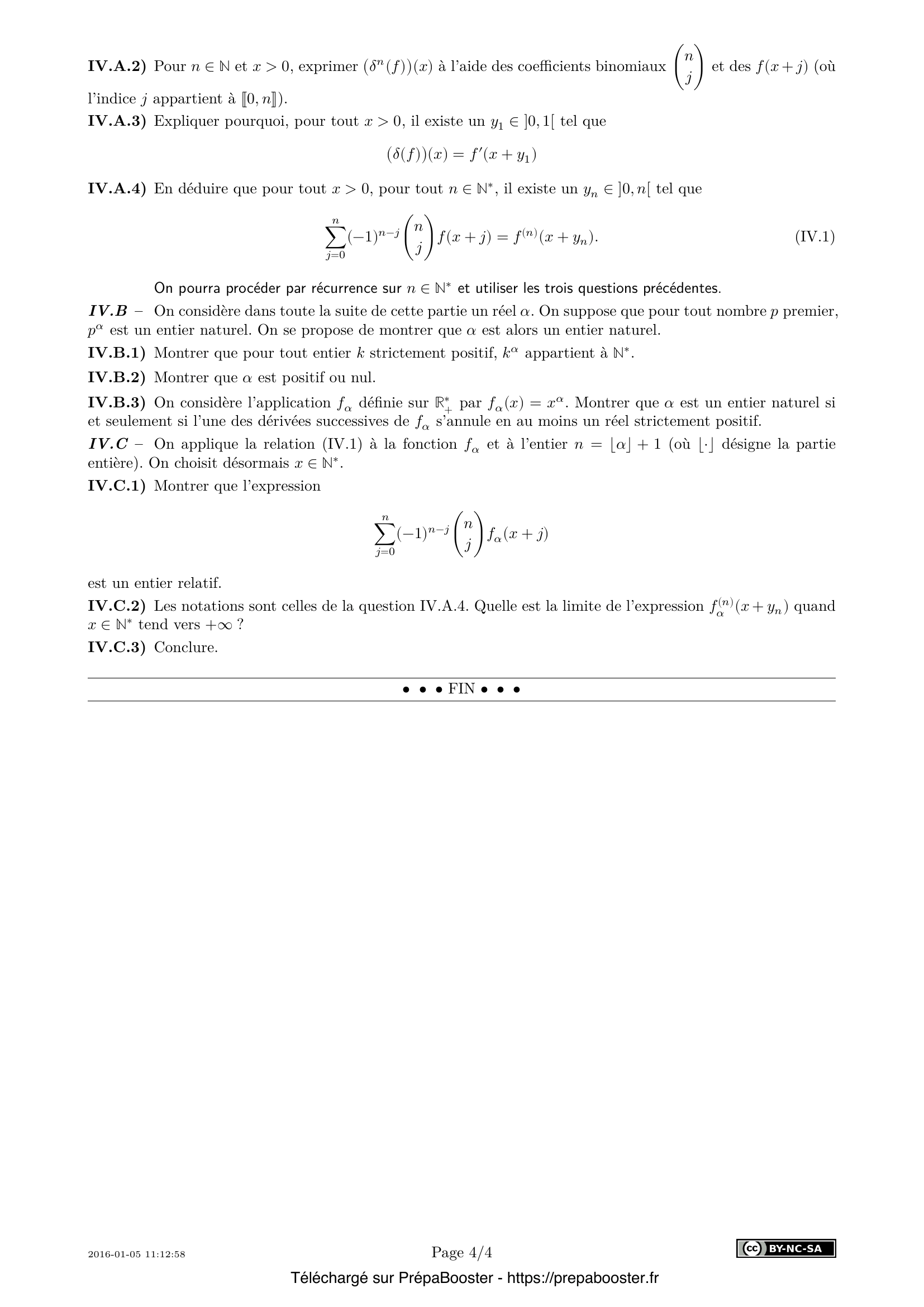 La partie IV généralise les opérateurs δ et τ aux fonctions de classe C∞ sur ℝ₊*. Par exemple, la question IV.A.4 montre une formule de type Taylor pour les différences finies, reliant δⁿ(f) aux dérivées f⁽ⁿ⁾. C’est un outil puissant pour l’analyse des fonctions et des suites, souvent utilisé en CPGE pour étudier les approximations et les développements limités. Pour voir des applications, débloque les corrigés sur Prépa Booster !