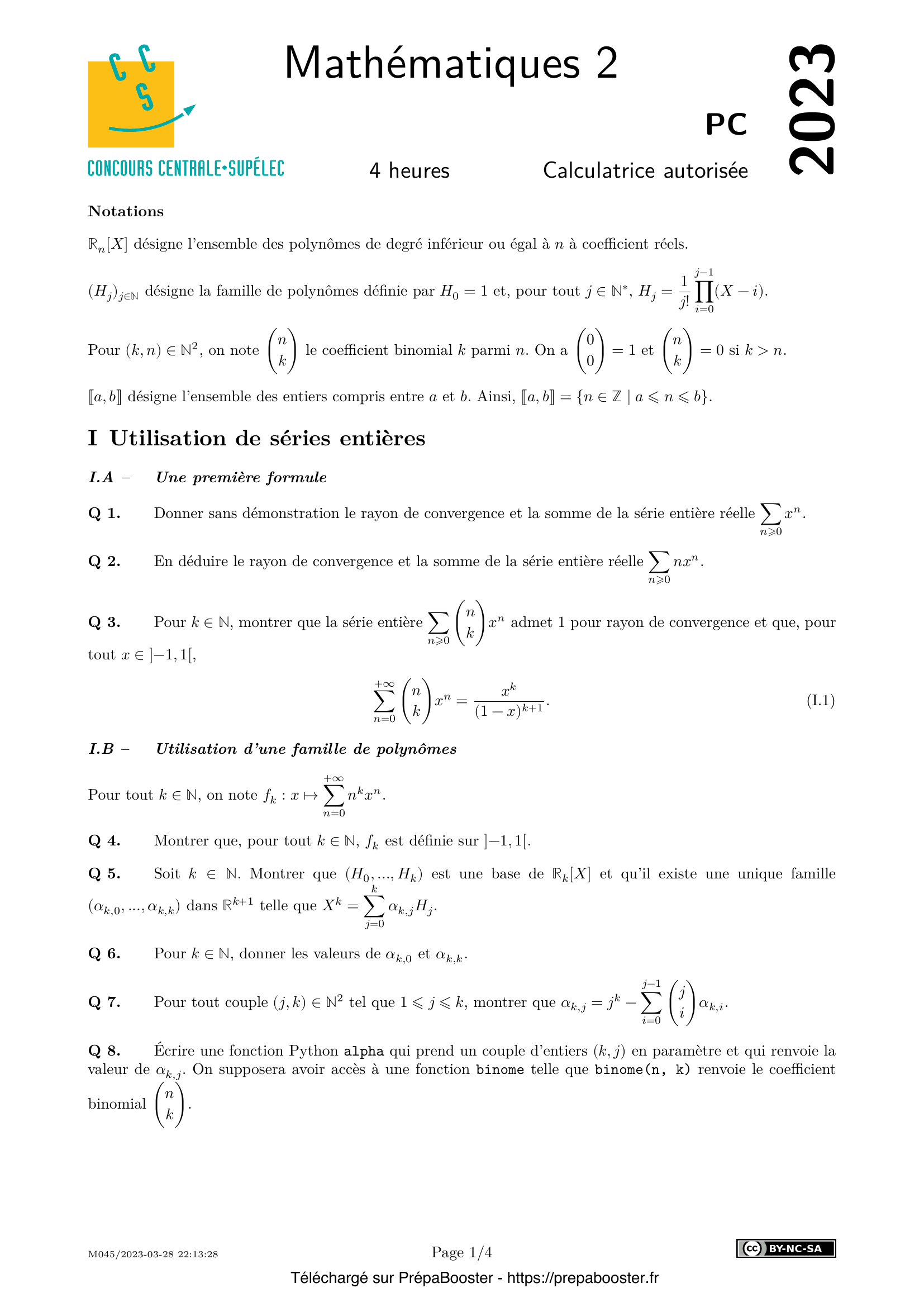 39. À l’aide notamment de la formule (I.3), montrer que, pour tout $n \in \mathbb{N}^*$,
