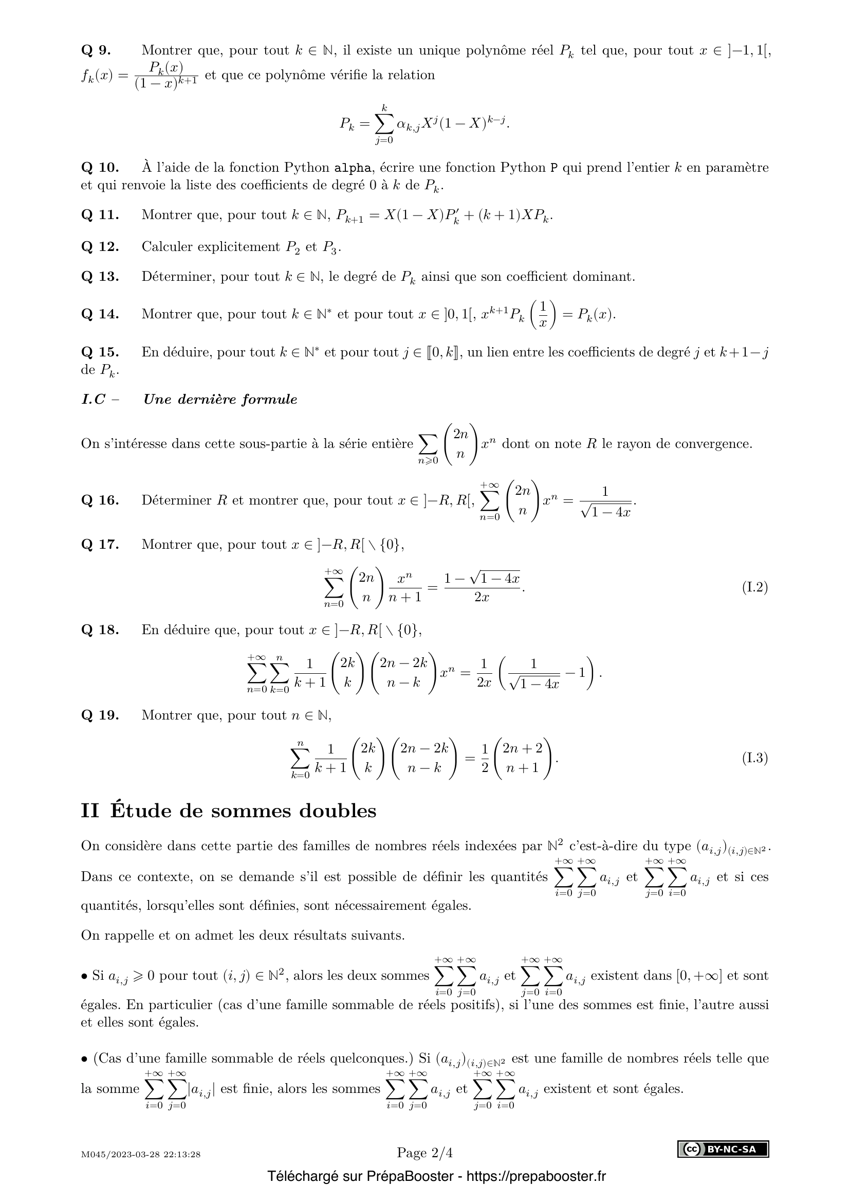 13. Déterminer, pour tout $k \in \mathbb{N}$, le degré de $P_k$ ainsi que son coefficient dominant.