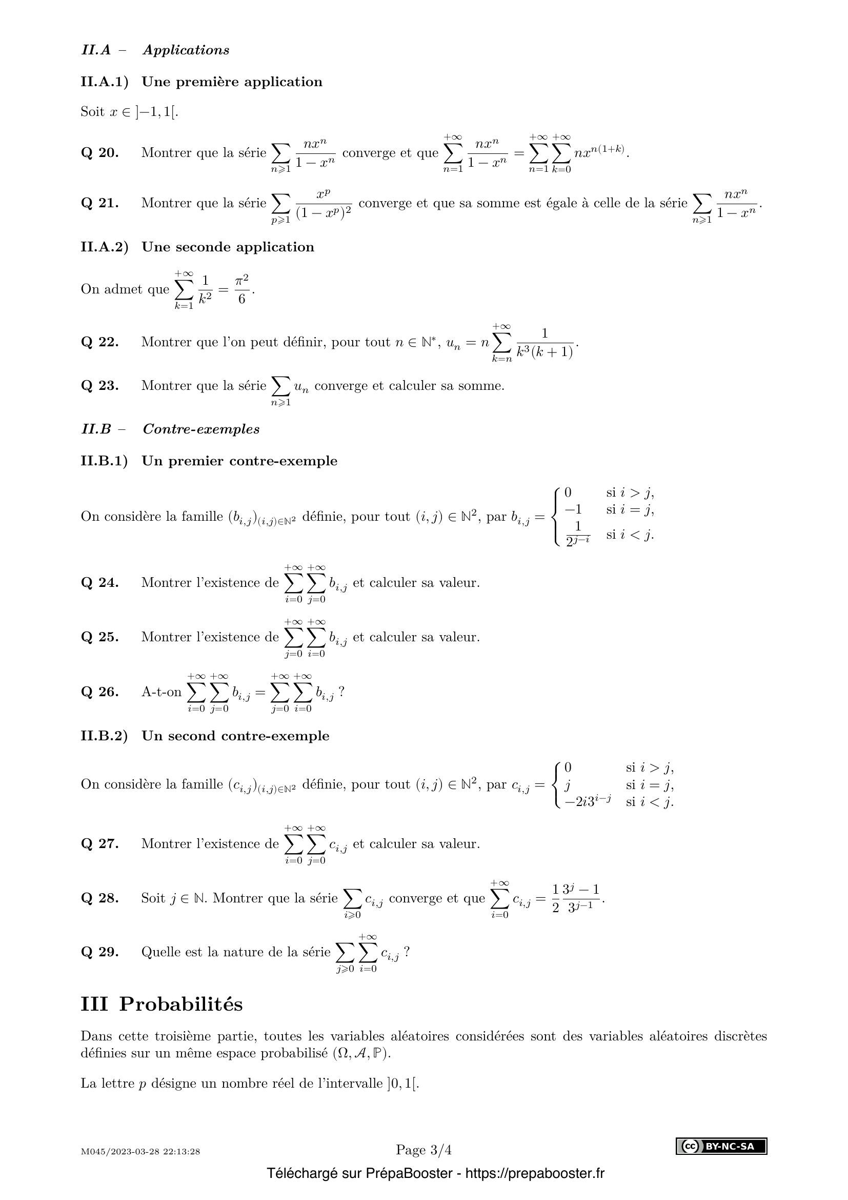 24. Montrer l’existence de $\sum_{i=0}^{+\infty} \sum_{j=0}^{+\infty} b_{i,j}$ où $b_{i,j} = \begin{cases}