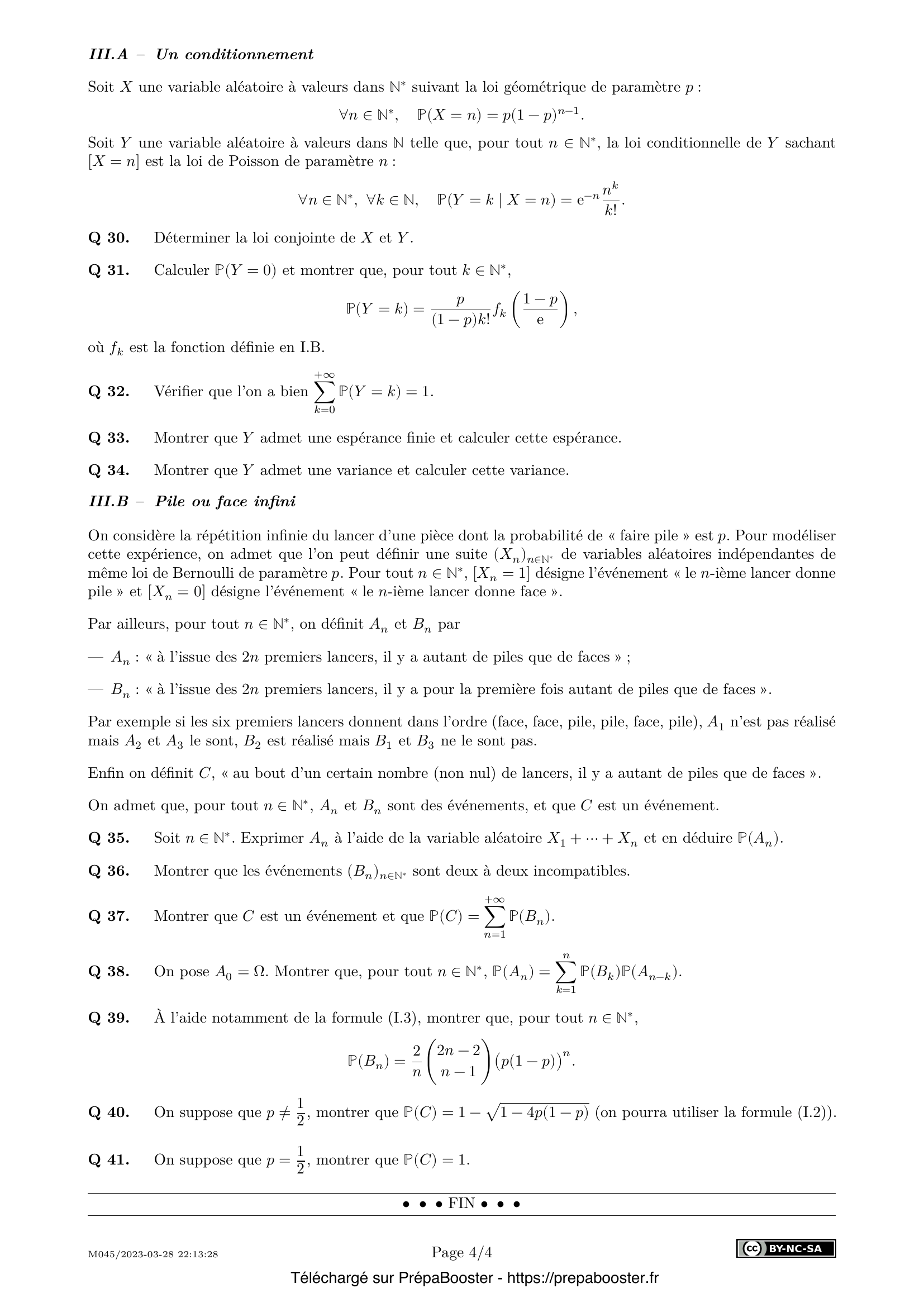 37. Montrer que $C$ est un événement et que $\mathbb{P}(C) = \sum_{n=1}^{+\infty} \mathbb{P}(B_n)$.
