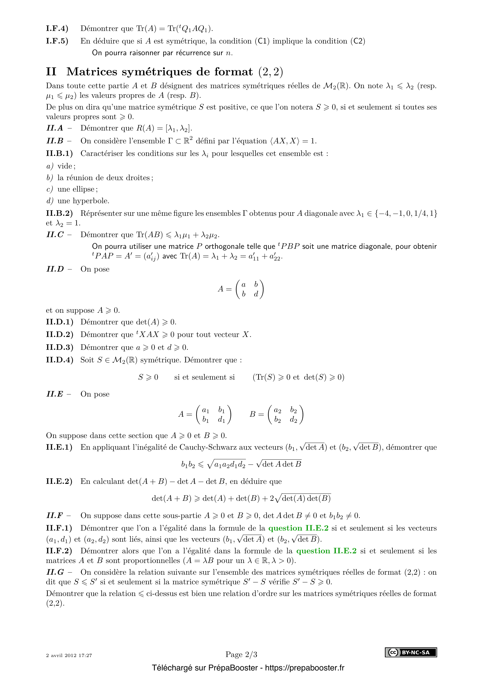 26. II.G – On considère la relation suivante sur l’ensemble des matrices symétriques réelles de format $(2,2)$ :\\