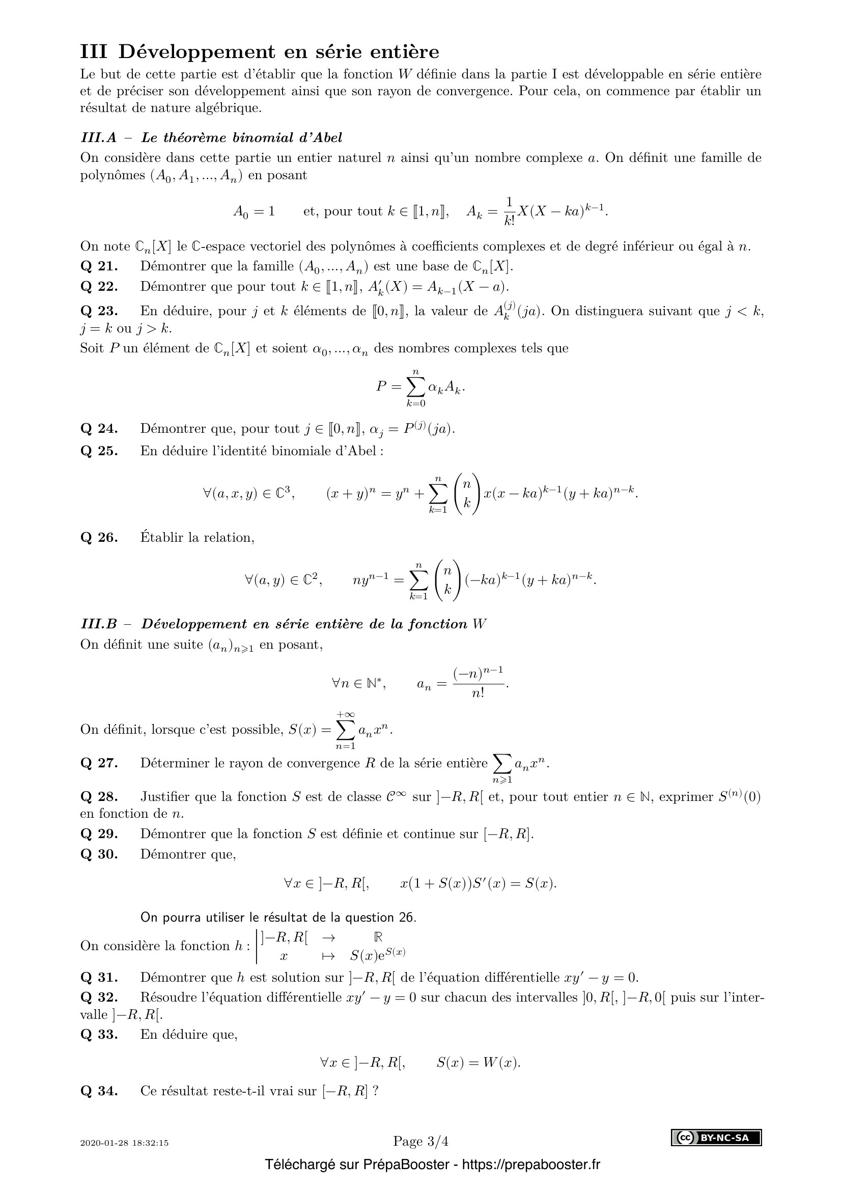 30. Démontrer que, \[ \forall x \in ]-R, R[,\, x(1+S(x))S'(x) = S(x). \] On pourra utiliser le résultat de la question 26.}