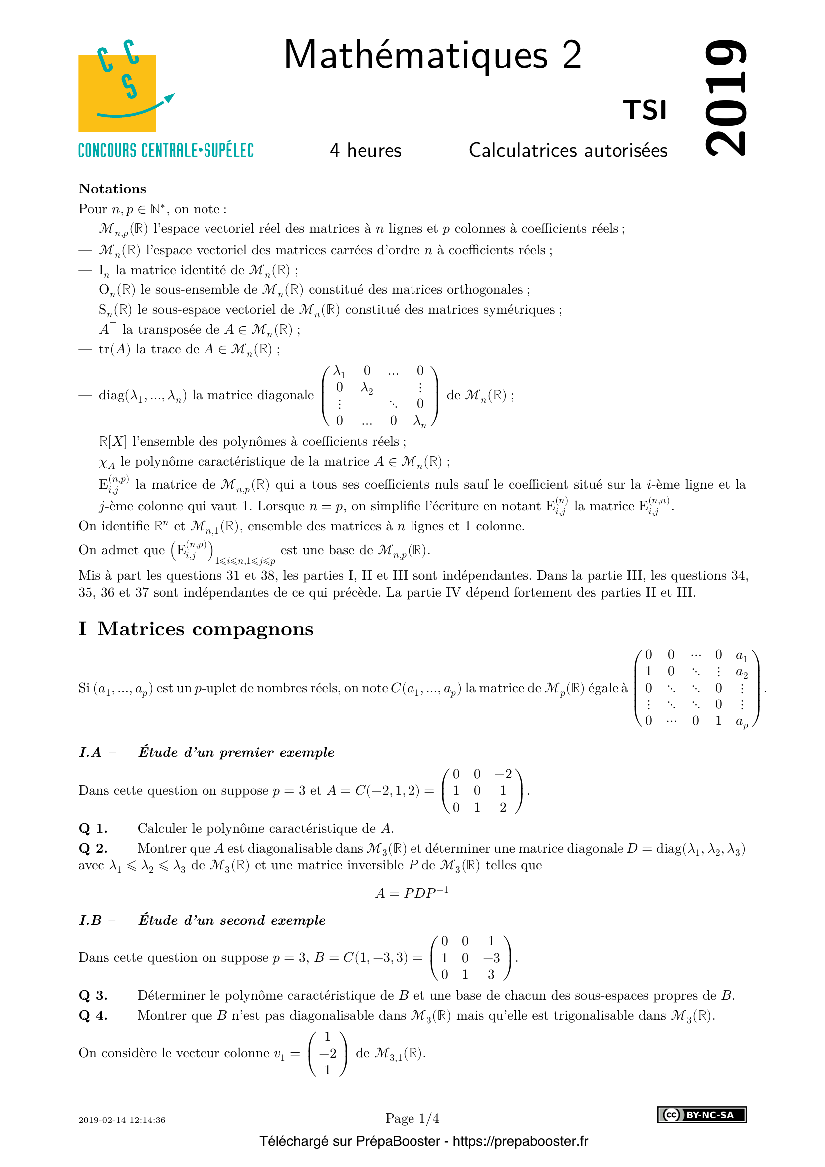 11. On considère un polynôme unitaire $P$ de $\mathbb{R}[X]$ de degré $p$. Montrer qu’il existe un unique $(a_1,\ldots,a_p) \in \mathbb{R}^p$ tel que $P = \chi_C$ où $C = C(a_1,\ldots,a_p)$.