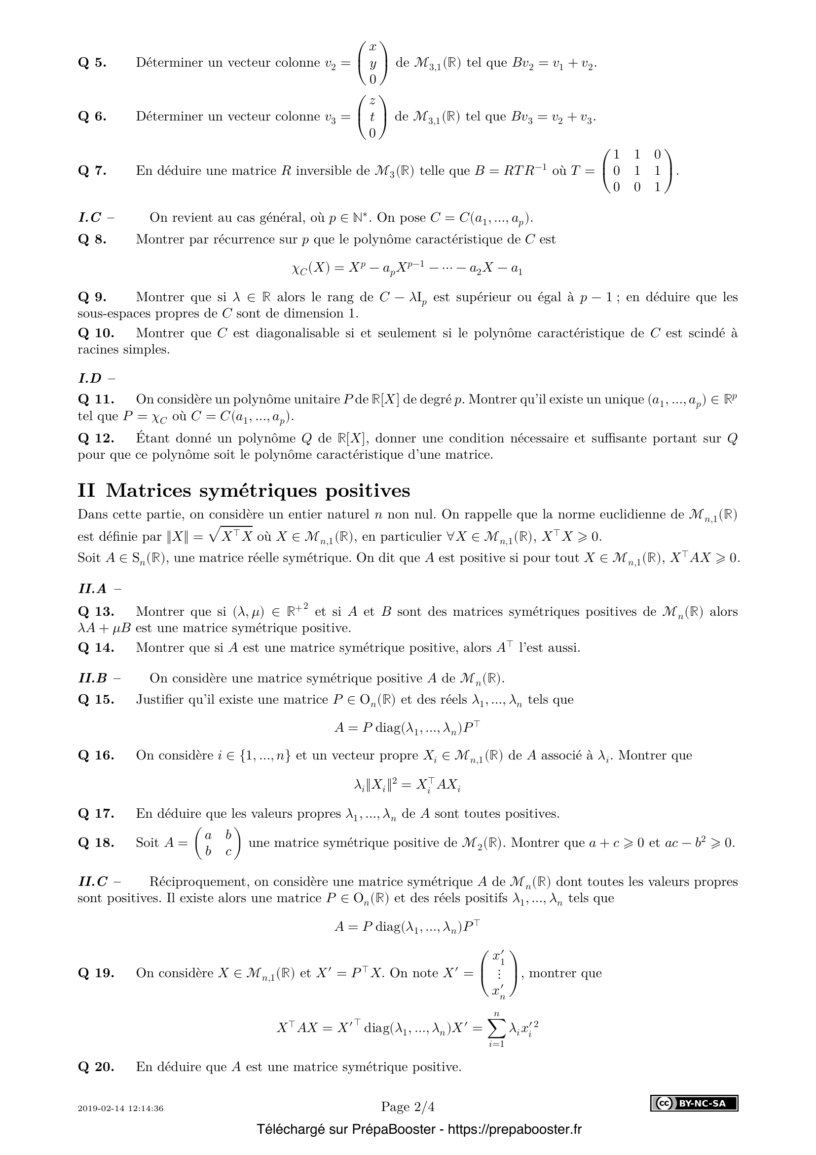 23. Réciproquement, on suppose que $A$ est une matrice symétrique positive. En utilisant la sous-partie II.B, montrer qu’il existe une matrice $B \in \mathcal{M}_n(\mathbb{R})$ telle que $A = B^\top B$.