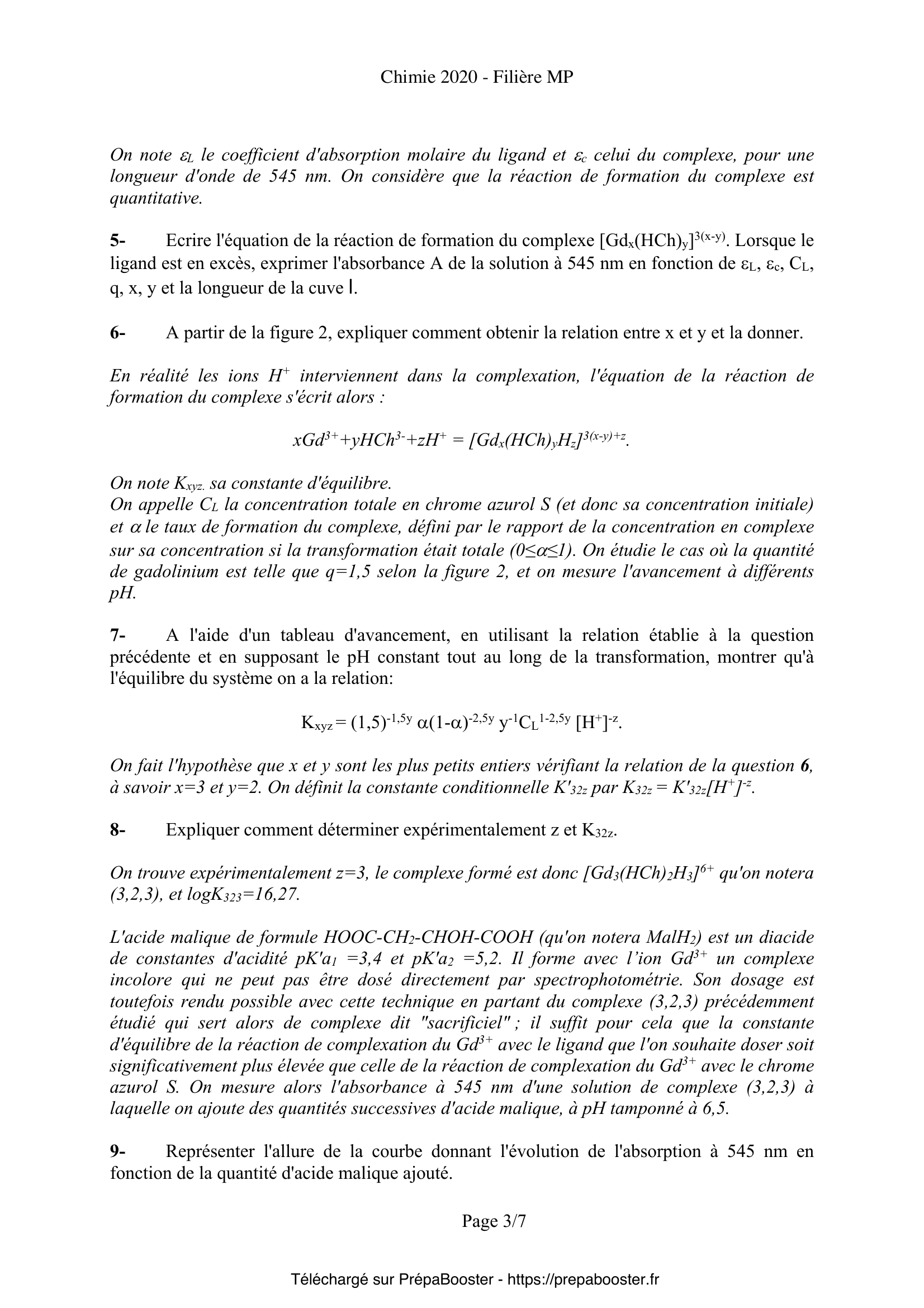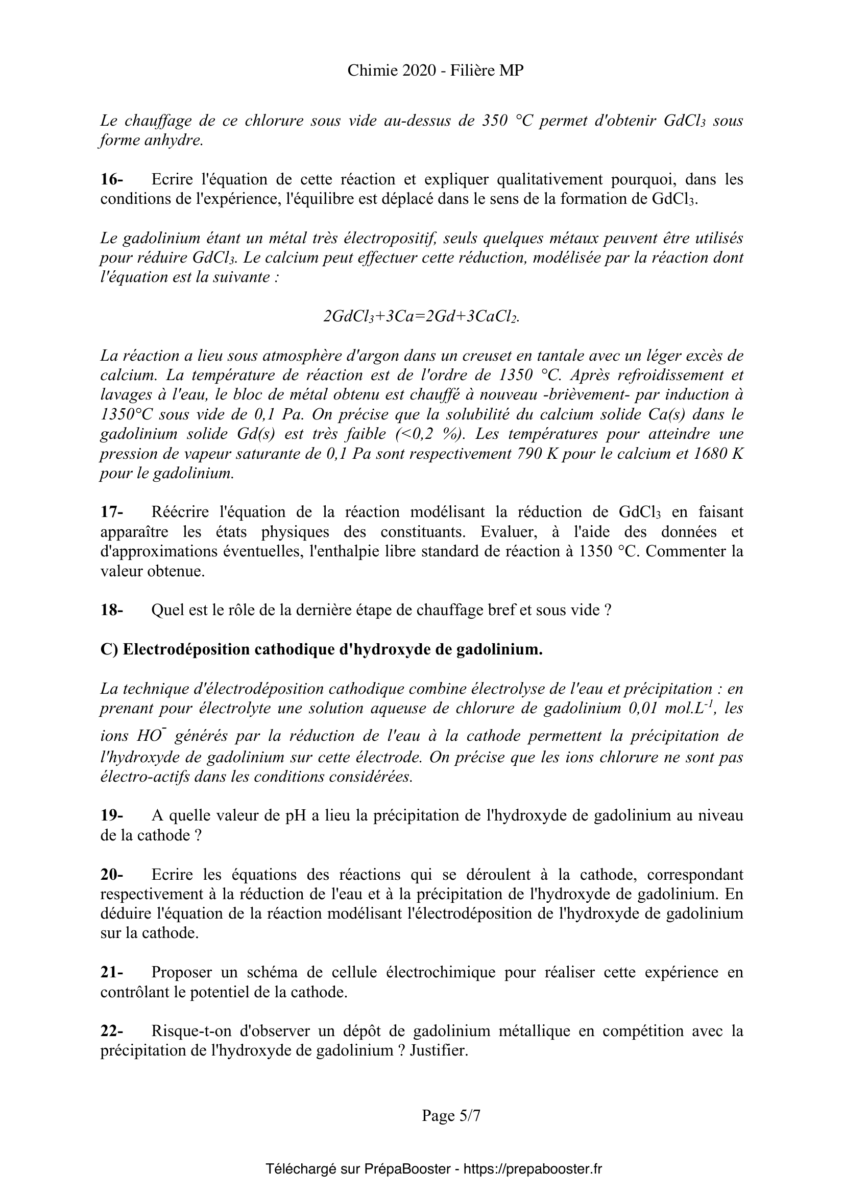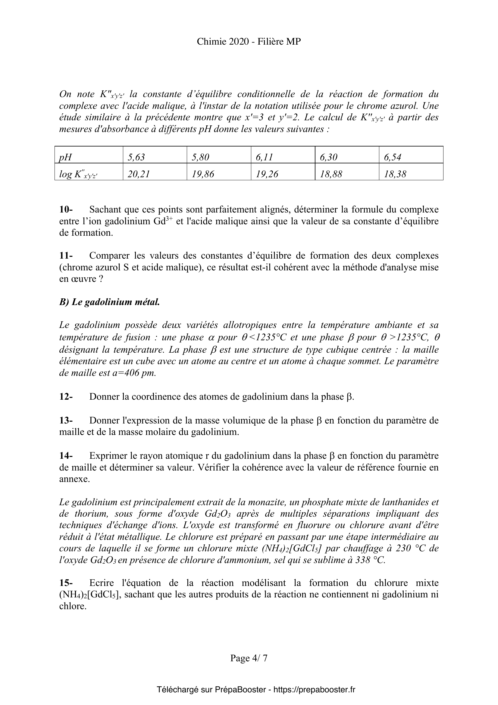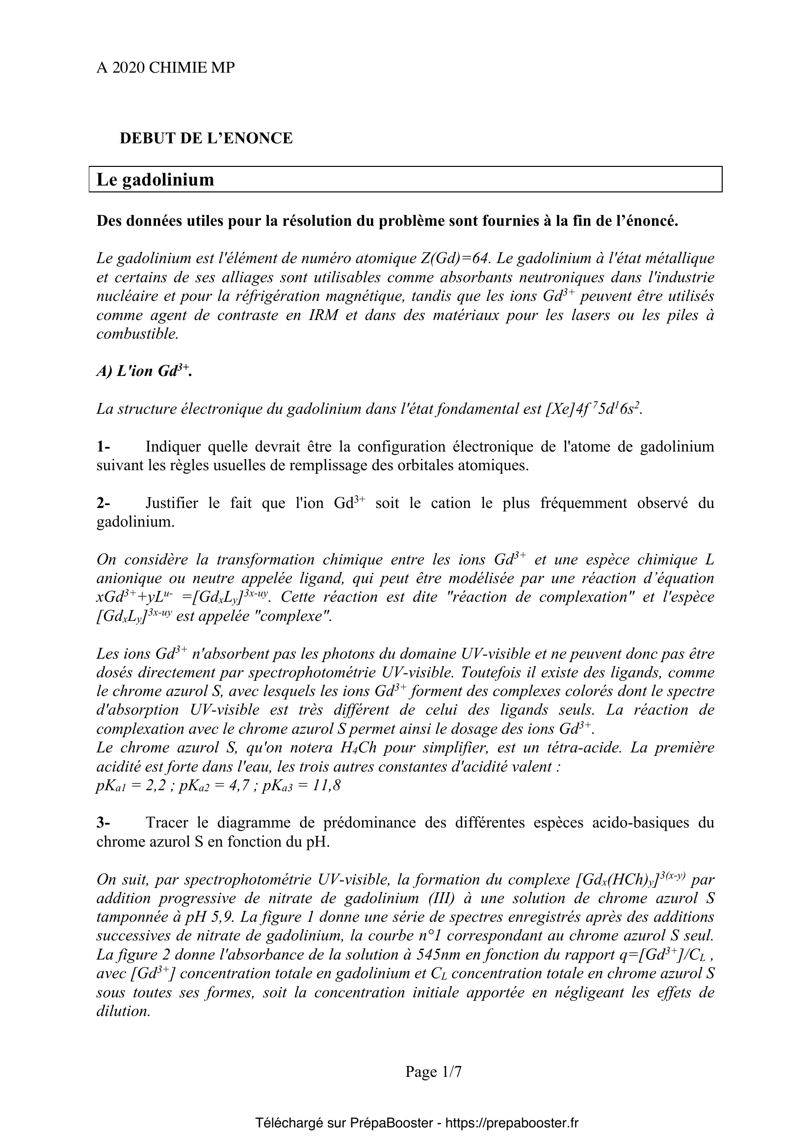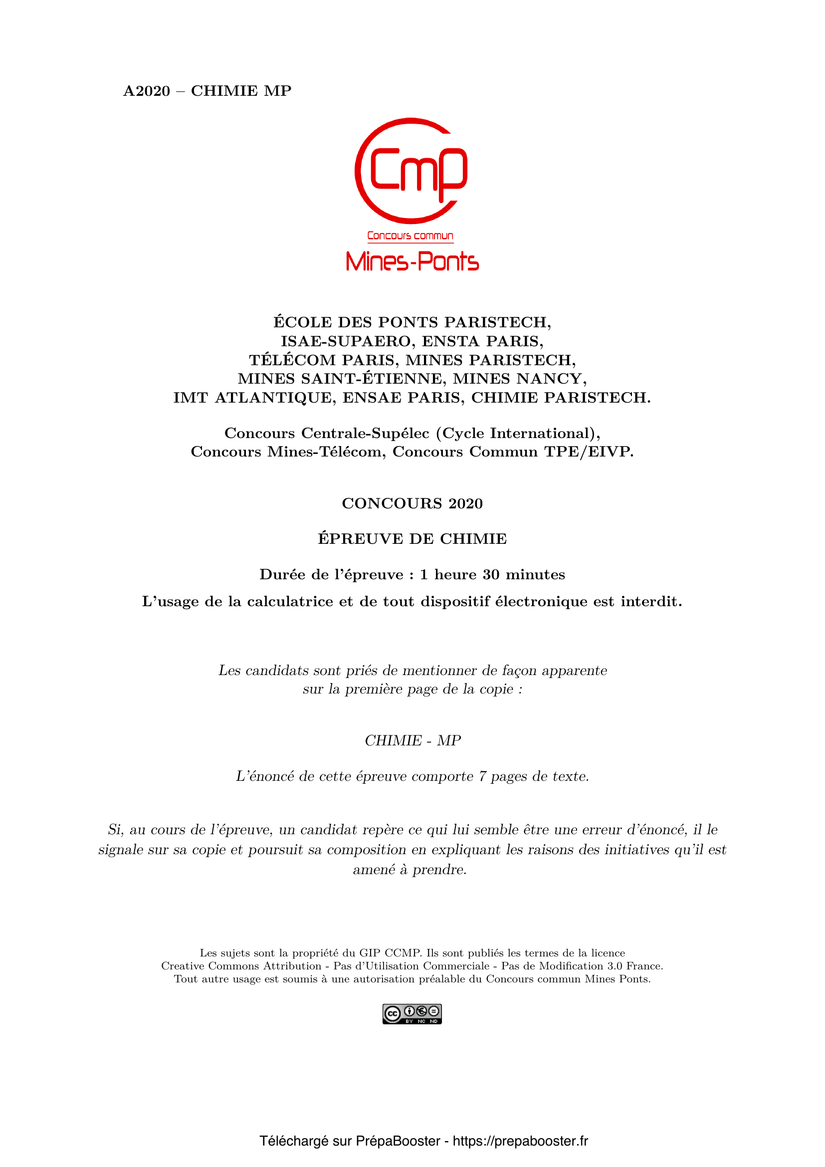 Ce sujet de Chimie du concours Mines Ponts MP 2020 correspond aux épreuves disponibles sur le site officiel du concours Mines Ponts. Retrouve sur Prépa Booster toutes les ressources nécessaires pour ta préparation, y compris les corrigés détaillés.