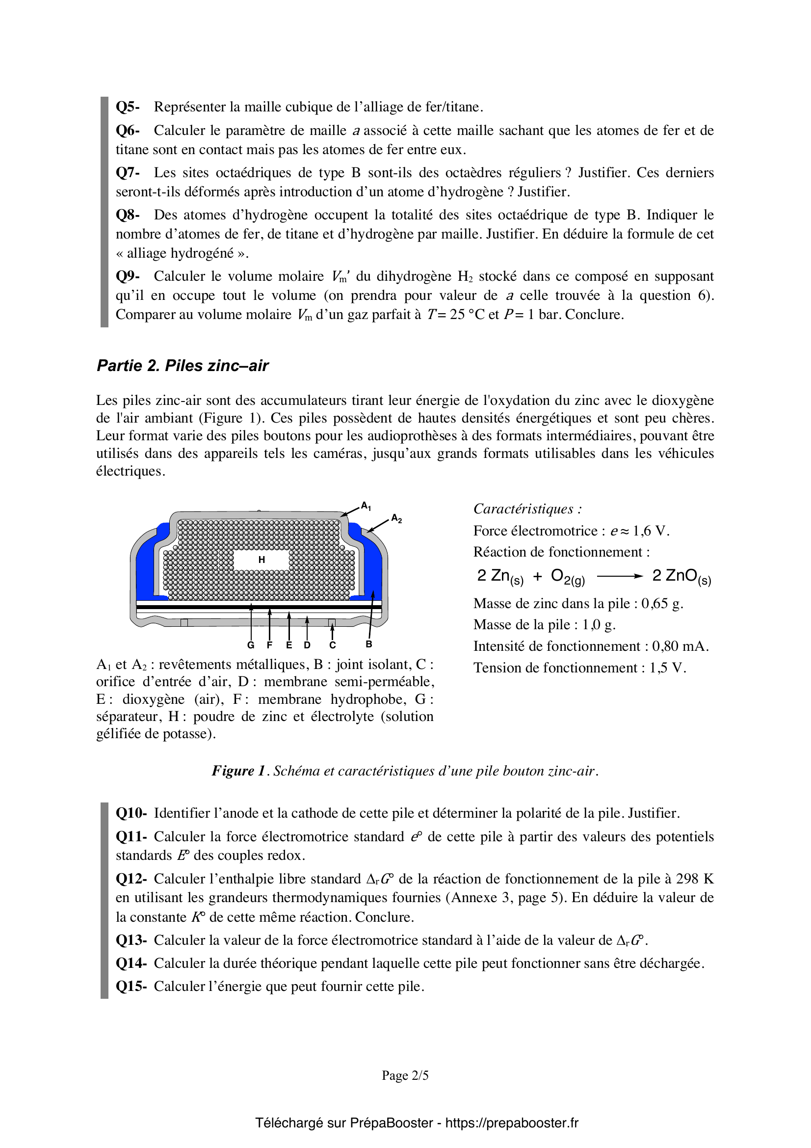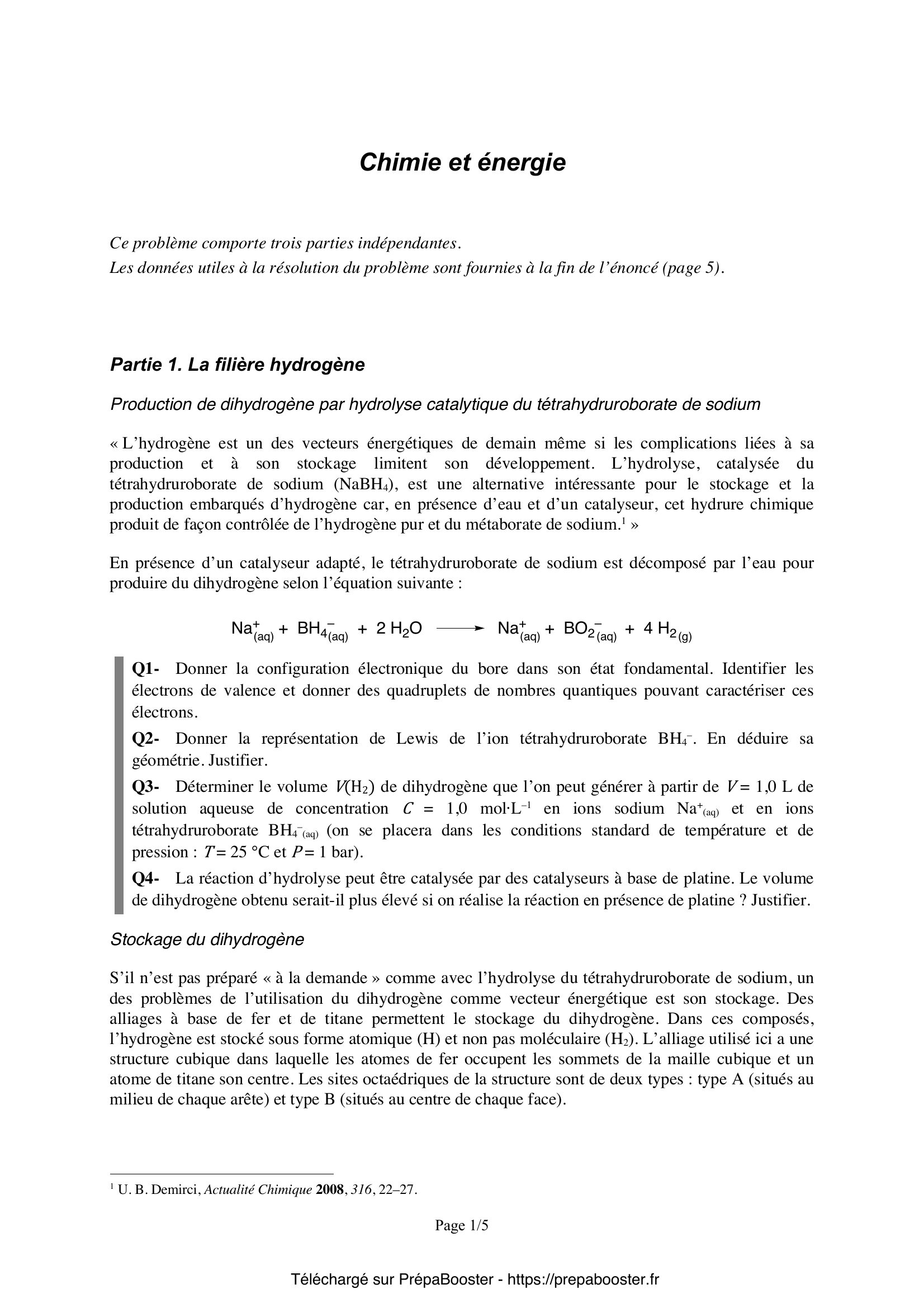 Les sujets de Chimie des autres années du concours Mines Ponts :
