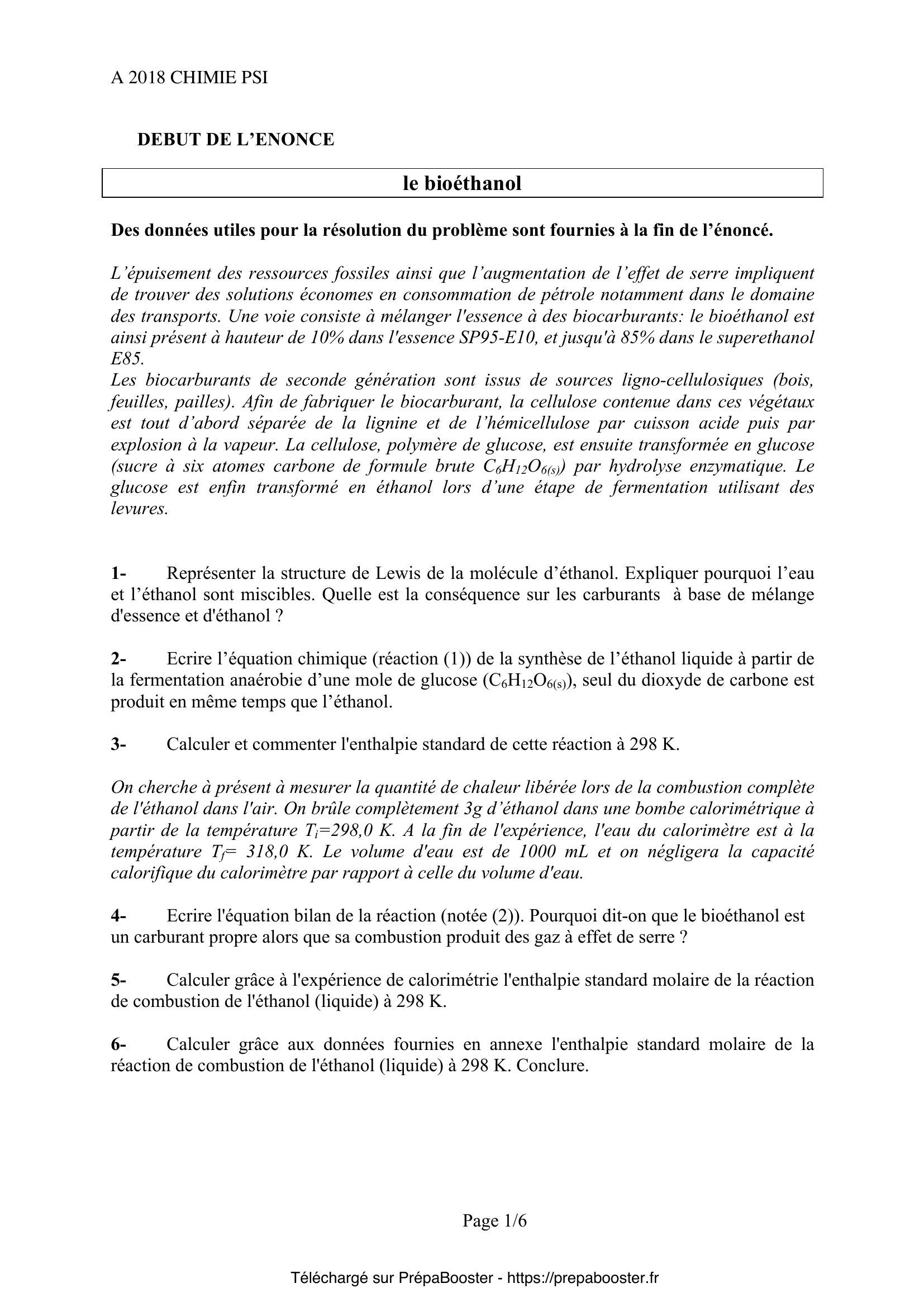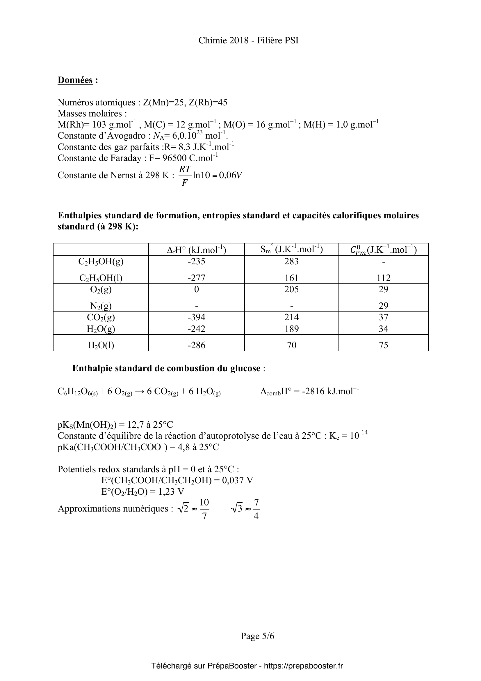 Ce sujet de Chimie du concours Mines Ponts PSI 2018 correspond aux épreuves disponibles sur le site officiel du concours Mines Ponts. Retrouve sur Prépa Booster toutes les ressources nécessaires pour ta préparation, y compris les corrigés détaillés.