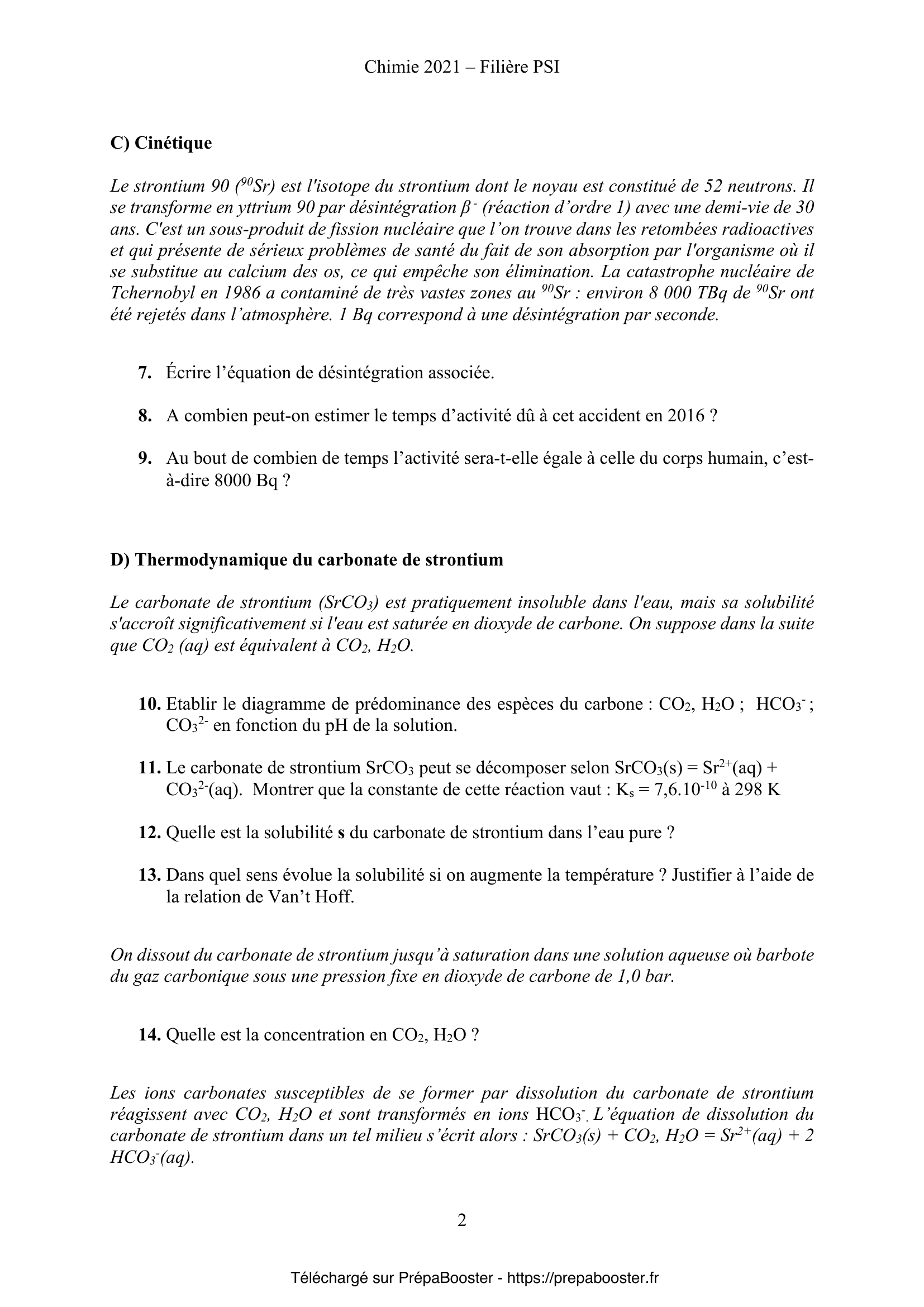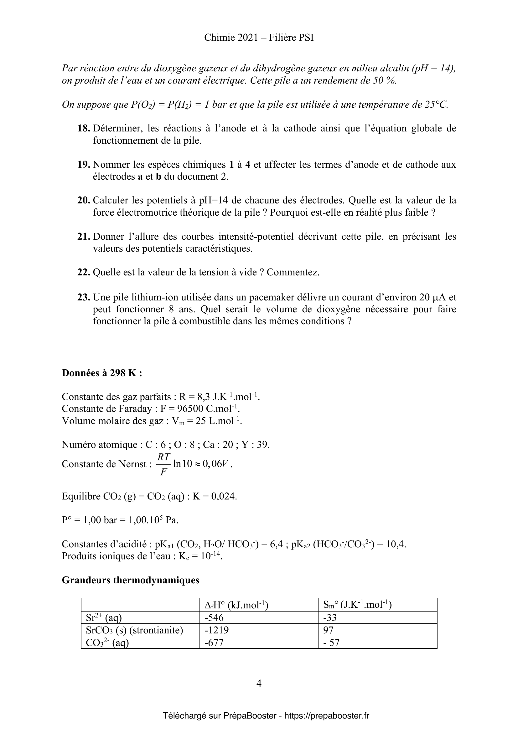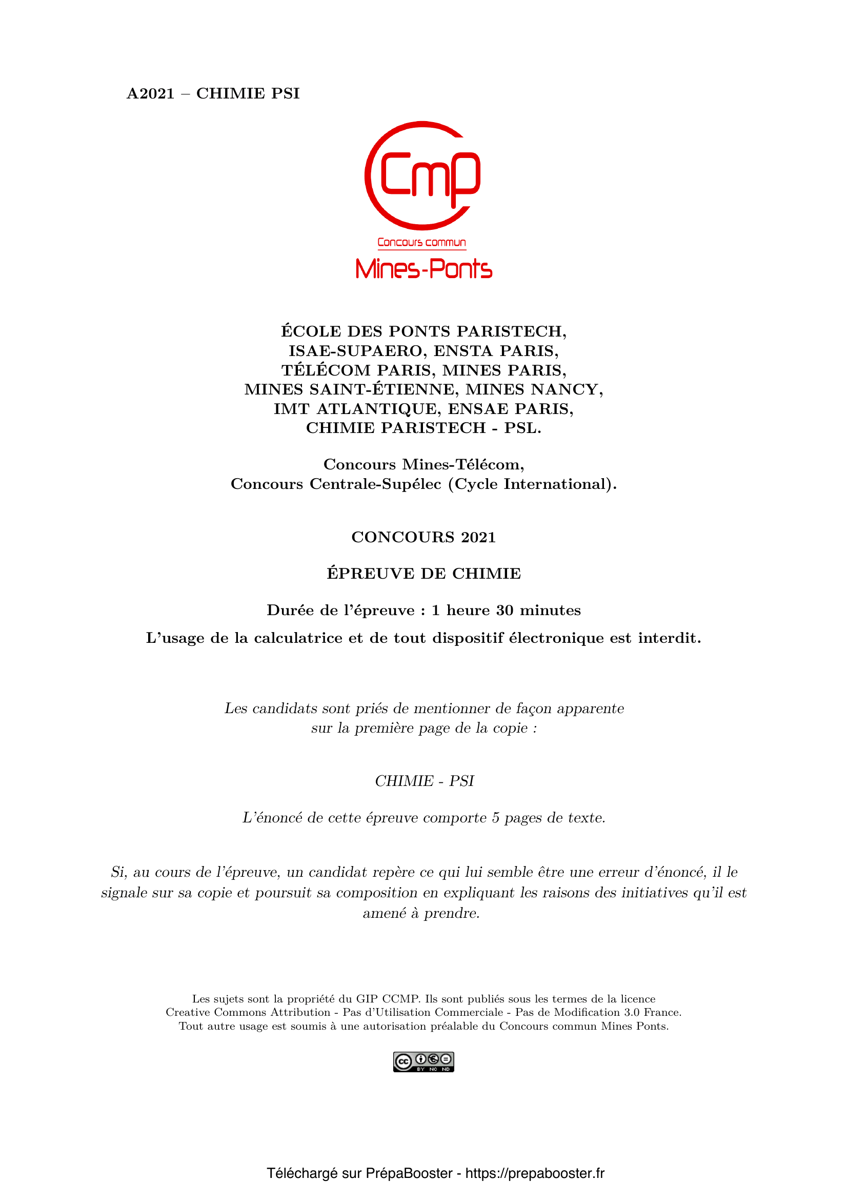 Ce sujet de Chimie du concours Mines Ponts PSI 2021 correspond aux épreuves disponibles sur le site officiel du concours Mines Ponts. Retrouve sur Prépa Booster toutes les ressources nécessaires pour ta préparation, y compris les corrigés détaillés.