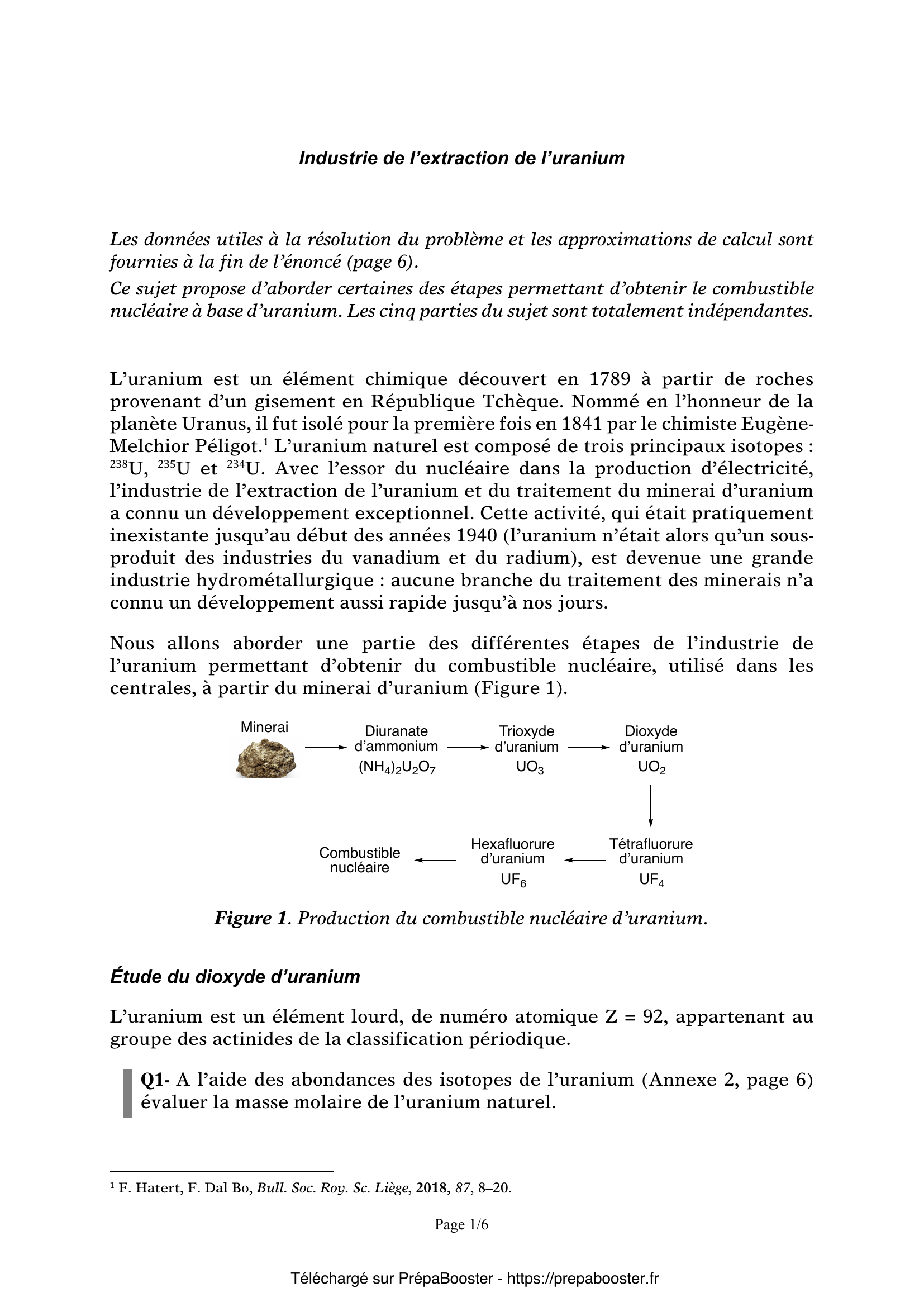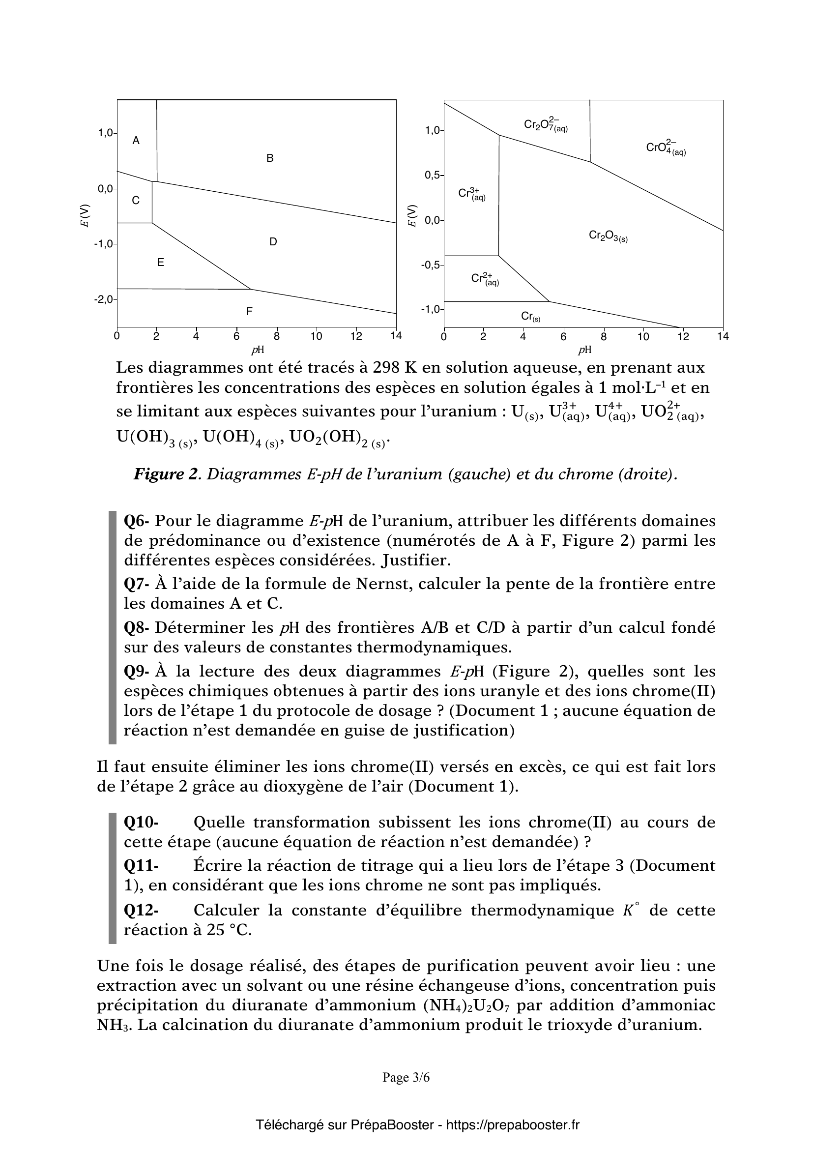 Les sujets de Chimie des autres années du concours Mines Ponts :