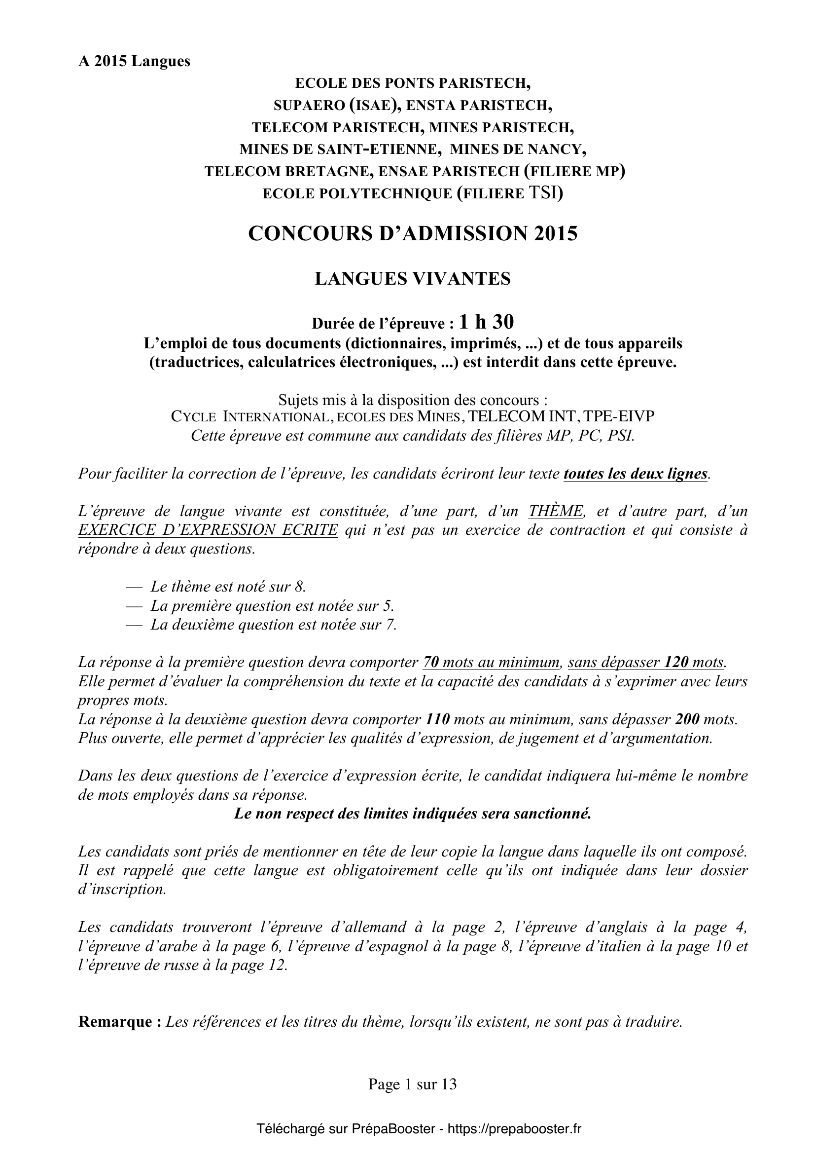 Dans l’épreuve de langues de la filière MP, les sujets gravitent souvent autour de grands thèmes tels que la responsabilité du scientifique, l’innovation, les limites de la science, le rapport entre science et société, mais aussi l’évolution des techniques et leurs enjeux éthiques. Prépare-toi à argumenter sur ces notions et à les illustrer avec des exemples variés. Pour t’échauffer avec des sujets corrigés et progresser méthodiquement, retrouve tout le nécessaire en débloquant l’accès aux corrigés sur PrépaBooster.