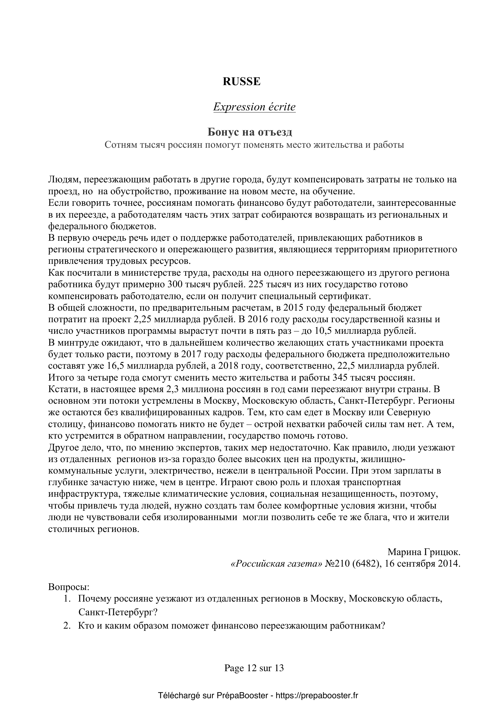 Questions du sujet