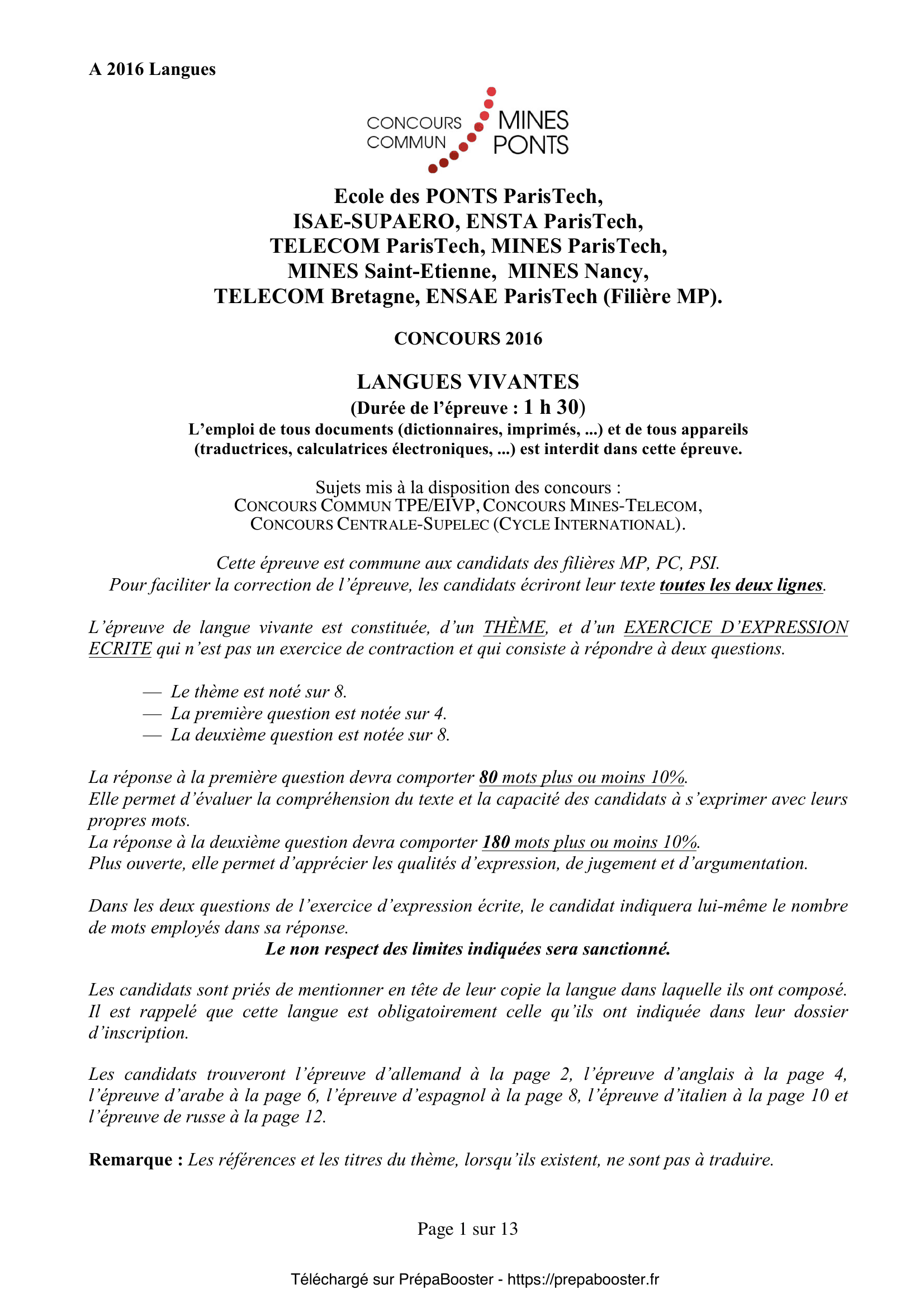 L’épreuve de langues du concours Mines-Ponts, filière MP, vérifie ta capacité à comprendre, analyser et synthétiser des documents, à argumenter à l’écrit comme à l’oral sur des thématiques à la fois scientifiques et sociétales, et à t’exprimer avec richesse et précision. Y sont attendues des références à la culture scientifique ainsi qu’une grande rigueur dans l’organisation de ta réflexion. Pour progresser, pense à t’exercer avec des sujets corrigés disponibles après avoir débloqué ton accès PrépaBooster.