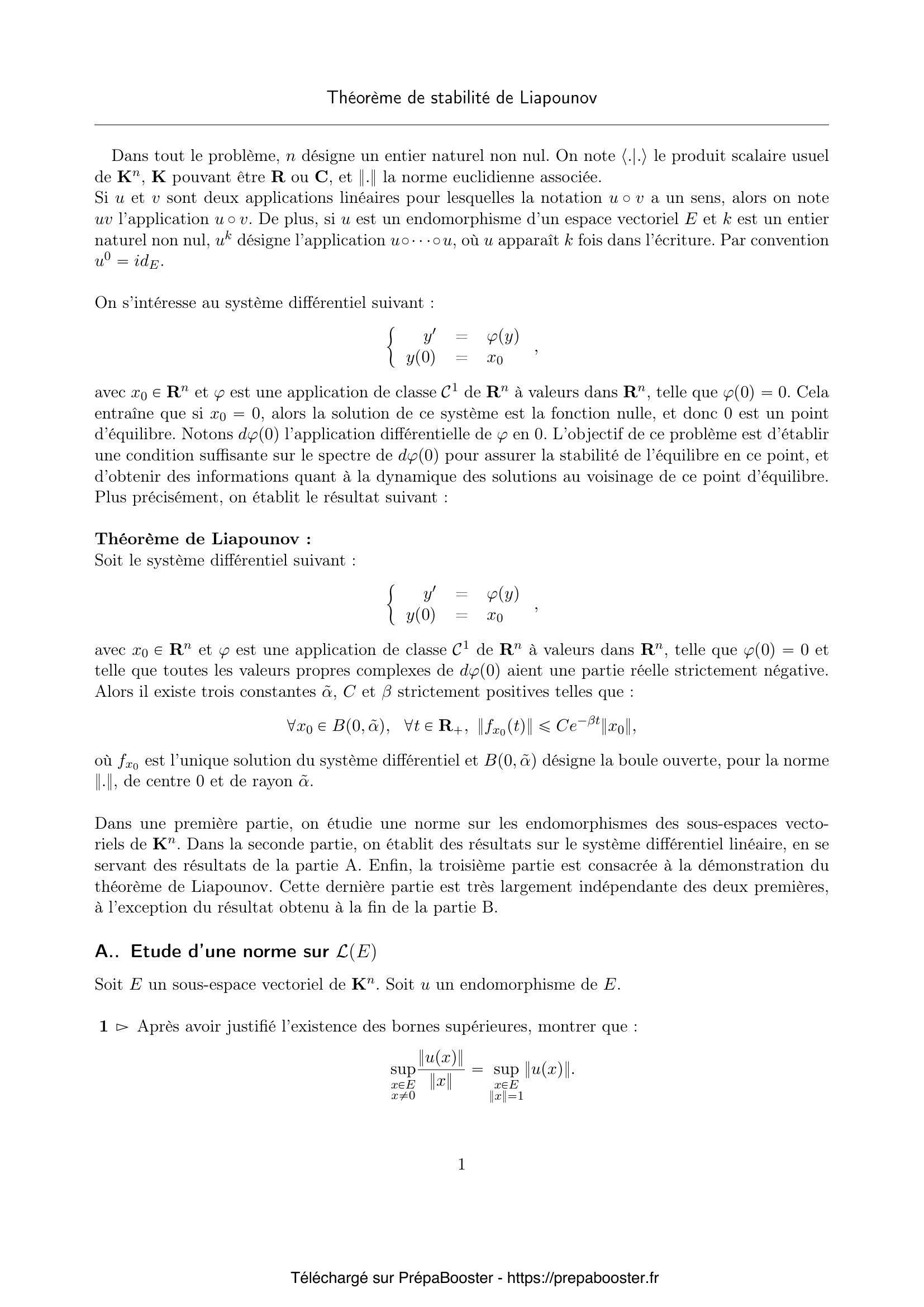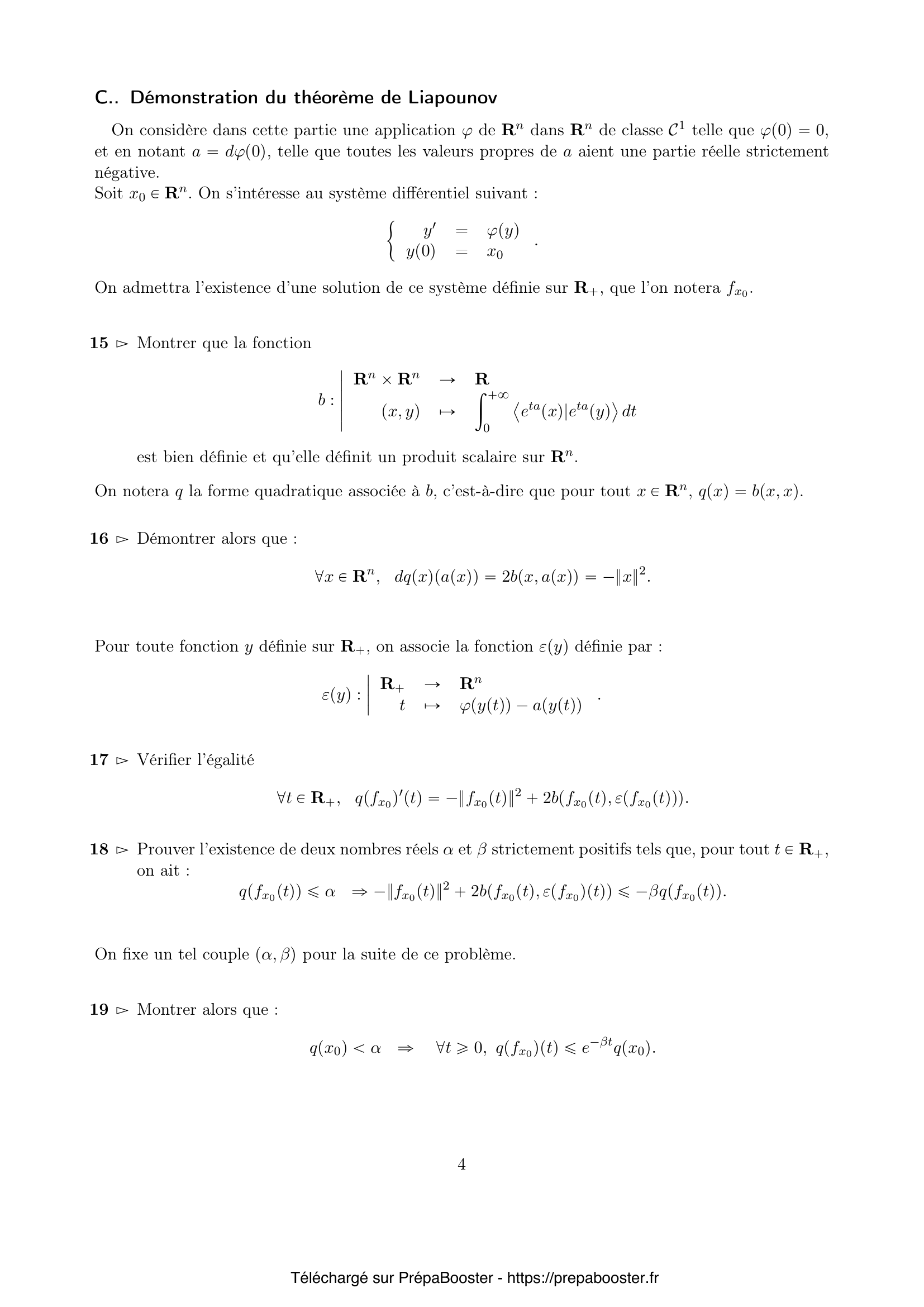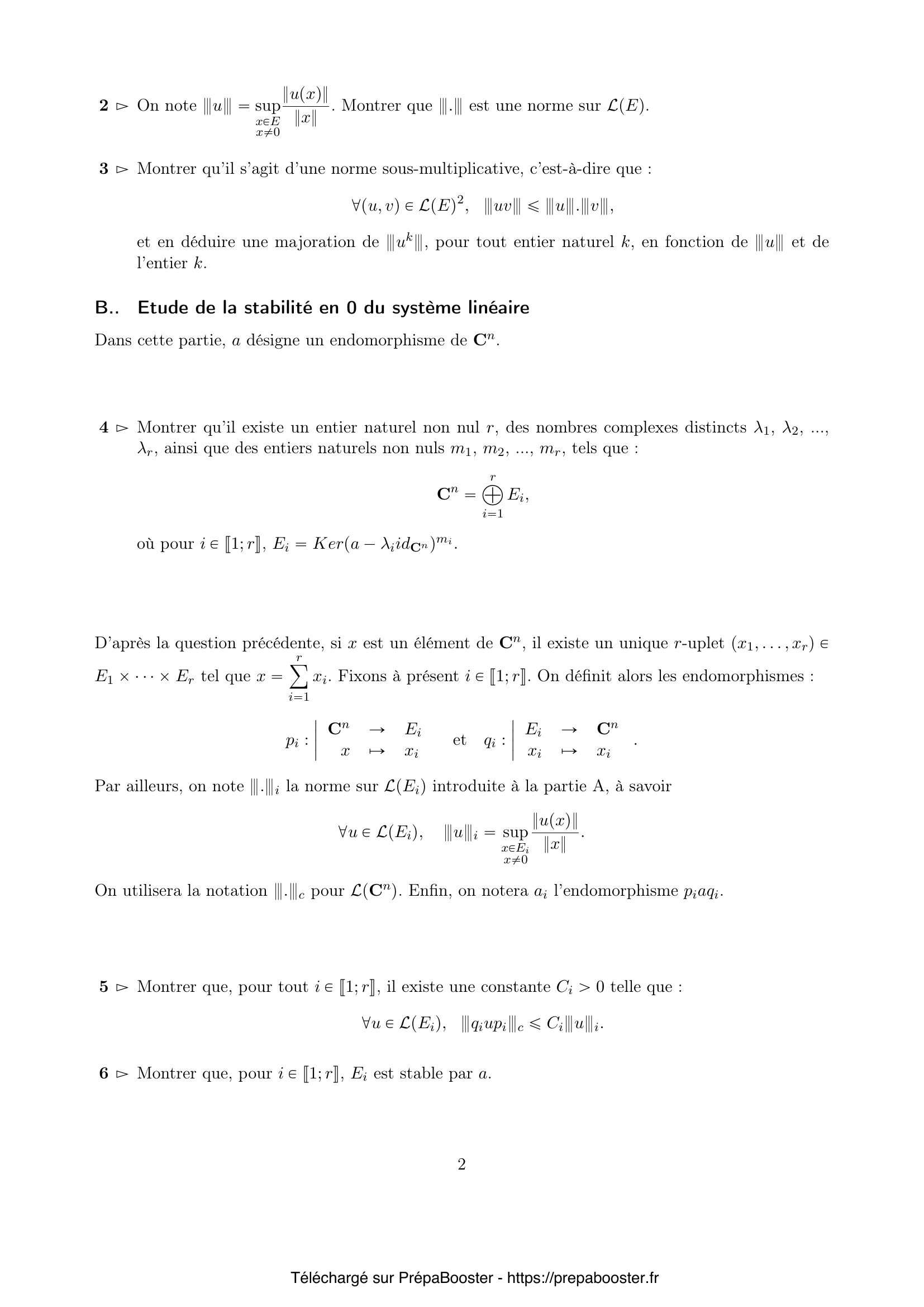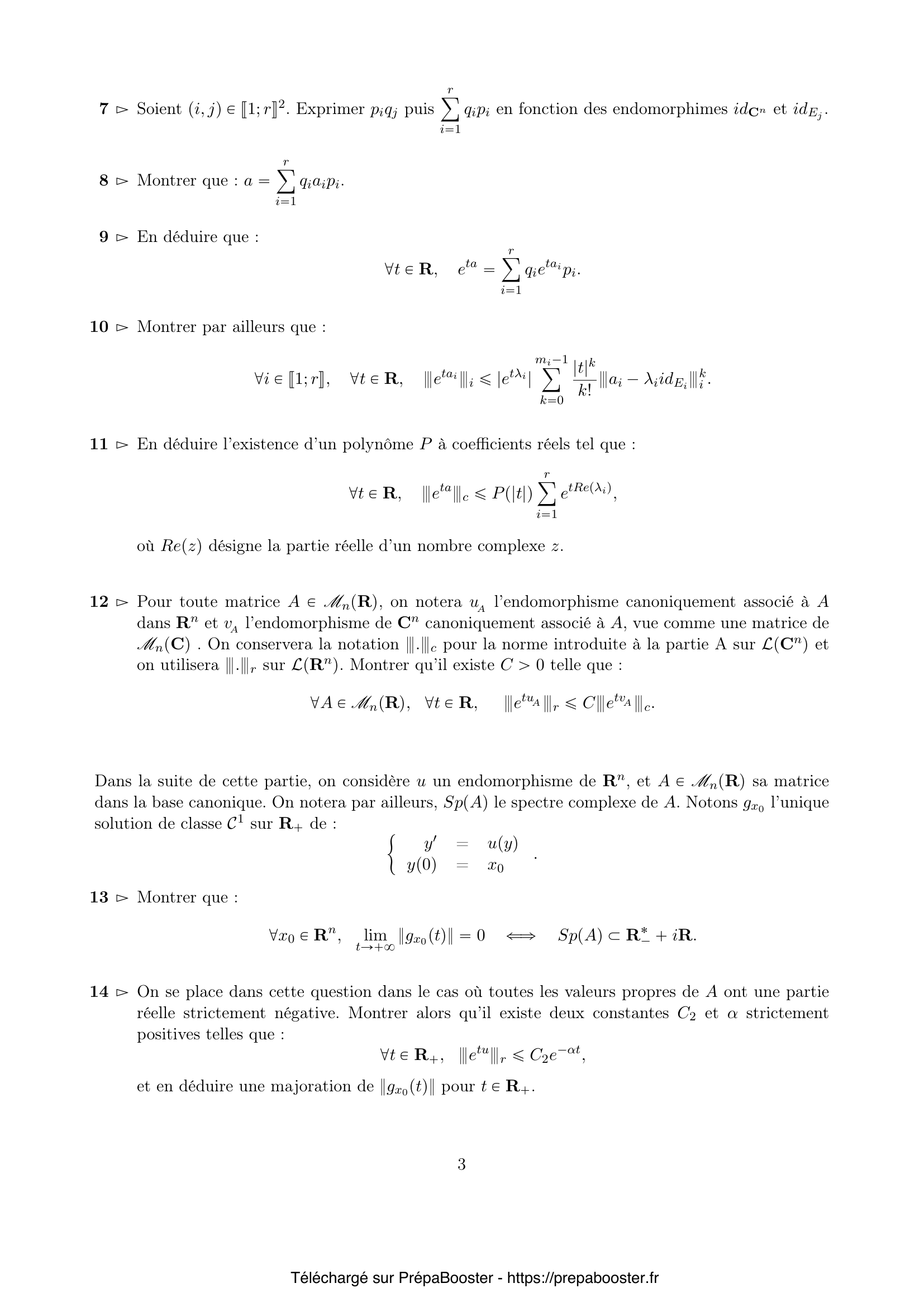 14. On se place dans cette question dans le cas où toutes les valeurs propres de $A$ ont une partie réelle strictement négative. Montrer alors qu’il existe deux constantes $C_2$ et $\alpha$ strictement positives telles que :