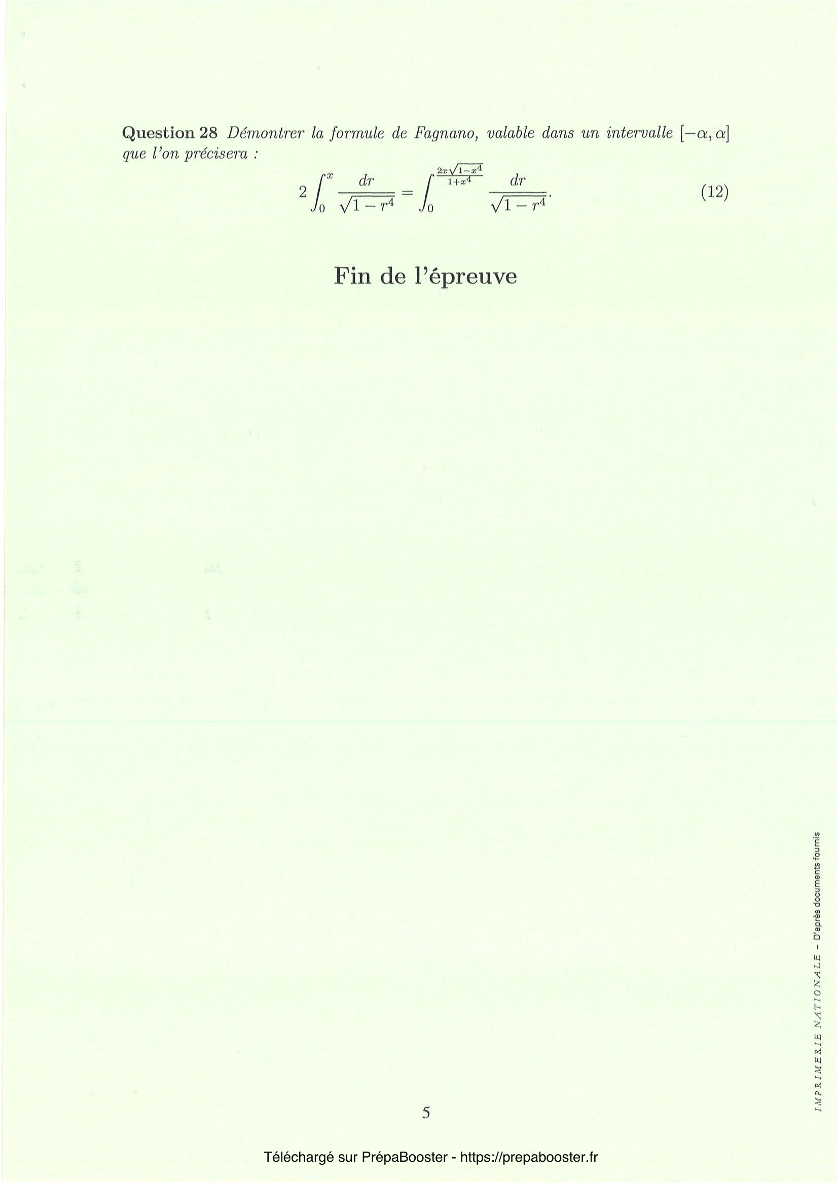 L’intégrale converge car la fonction \(\frac{1}{\sqrt{1 – r^4}}\) est continue sur \([0, 1[\) et admet une singularité intégrable en \(1\). Une comparaison avec une intégrale de Riemann permet de le justifier. Pour une analyse rigoureuse, consulte le corrigé sur Prépa Booster et profite d’un dashboard personnalisé pour suivre tes progrès !