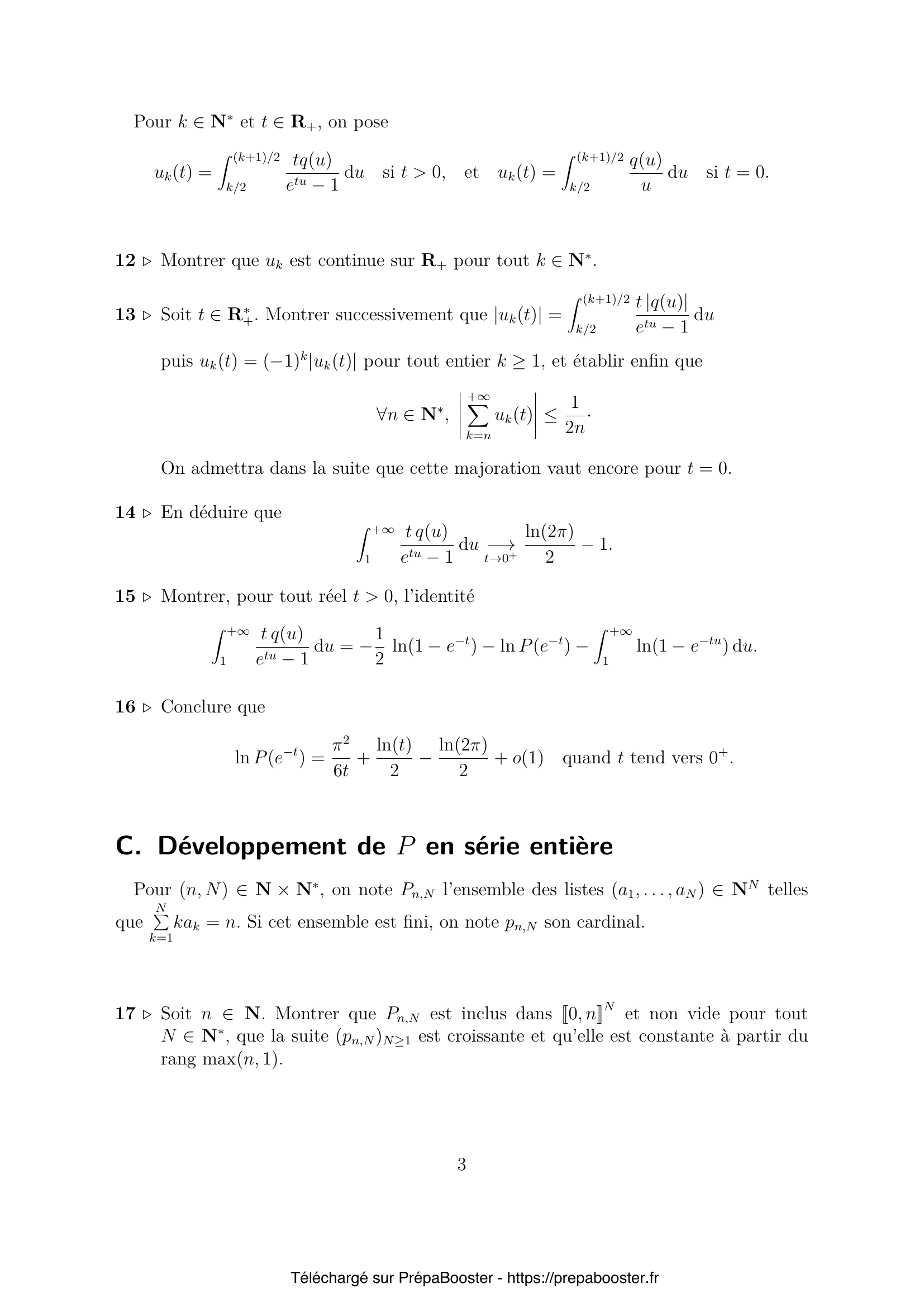 13. Soit $t \in \mathbb{R}_+^*$. Montrer successivement que