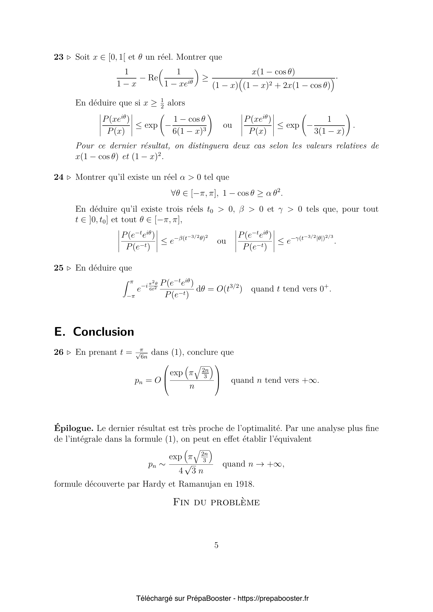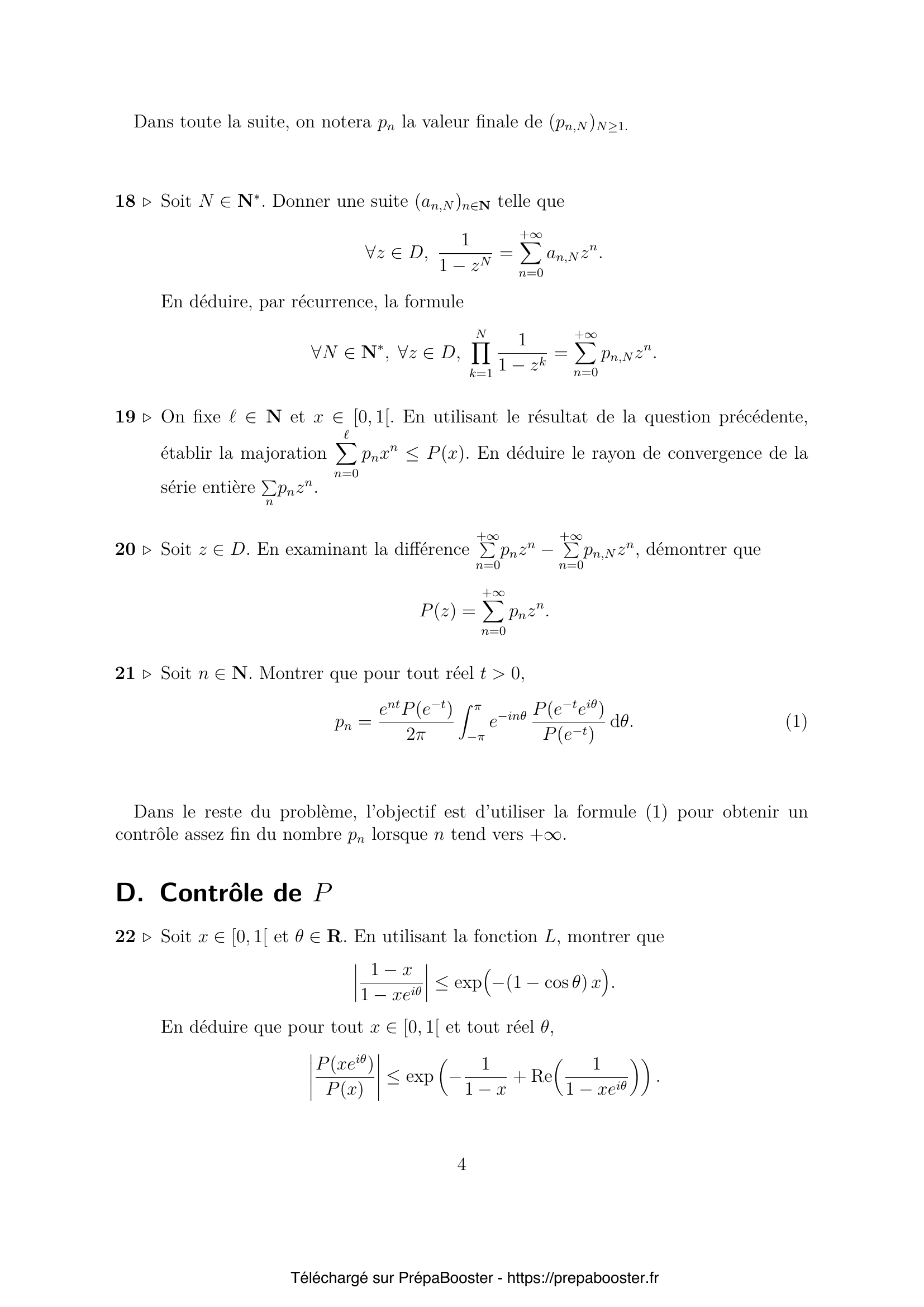 Dans le reste du problème, l’objectif est d’utiliser la formule (1) pour obtenir un contrôle assez fin du nombre $p_n$ lorsque $n$ tend vers $+\infty$.