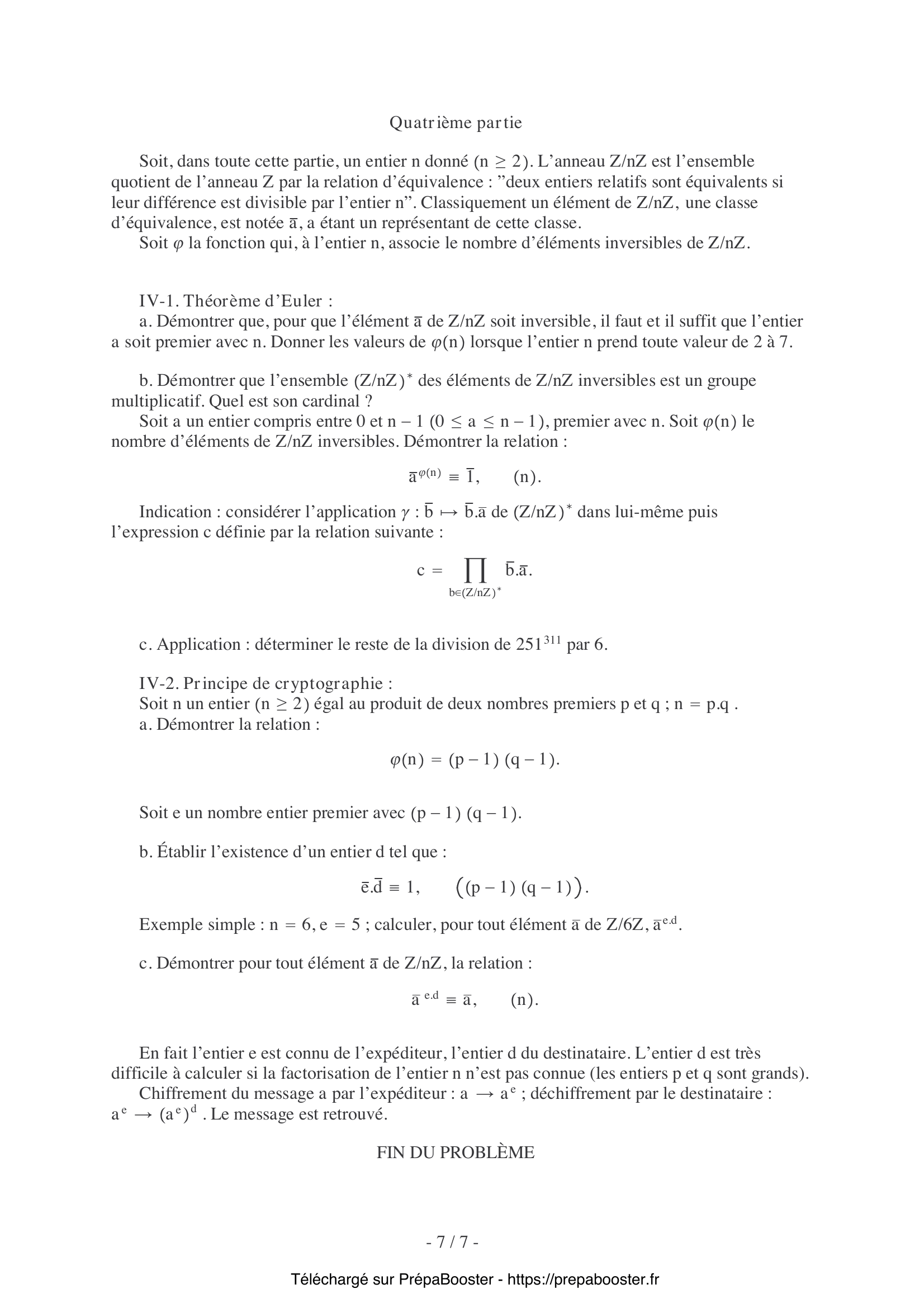 Travaille la théorie des nombres, les séries, l’analyse (en particulier les techniques d’encadrement et de convergence) et les bases de la cryptographie. Rien ne vaut la pratique : entraîne-toi avec les annales, et une fois prêt·e à te corriger, débloque l’accès aux corrigés et au dashboard personnalisé sur Prépa Booster pour progresser de façon ciblée et gagner en confiance pour le jour J !