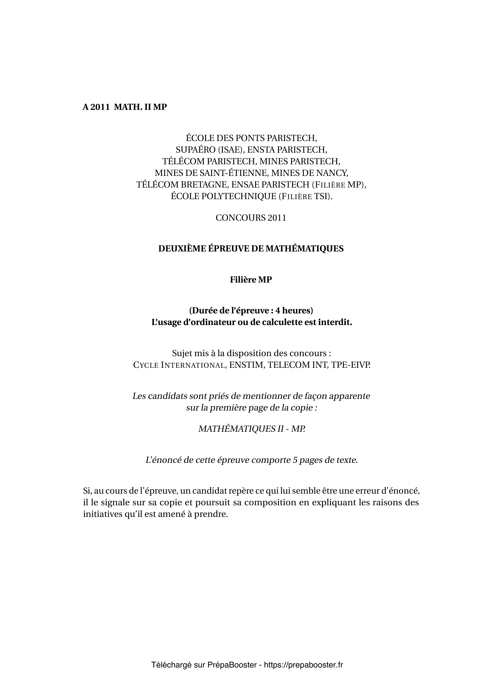Chaque sujet des Mines-Ponts est construit pour te forcer à relier plusieurs domaines des mathématiques, à valoriser la rigueur des raisonnements et à gérer la complexité des enchaînements logiques ! Travailler sur le sujet 2011 t’entraîne à enchaîner diagonalisation, analyse, EDL et minimisation. C’est aussi le meilleur moyen de repérer les astuces classiques de rédaction et de consolidation des résultats nécessaires. Pour progresser de façon ciblée, n’hésite pas à débloquer les corrigés de Prépa Booster pour avoir accès aux solutions détaillées, aux exercices similaires corrigés, et à ton dashboard personnalisé d’entraînement !