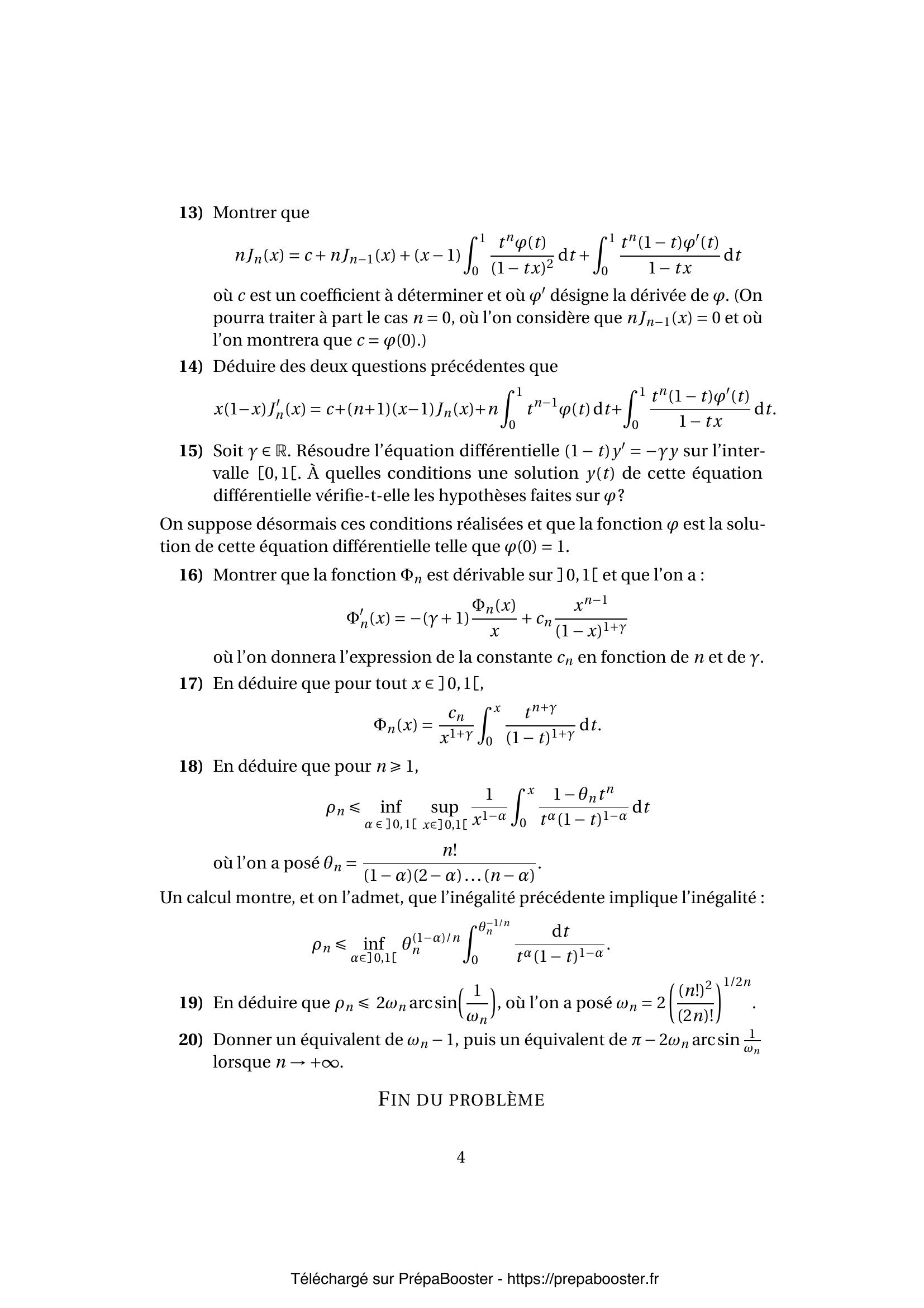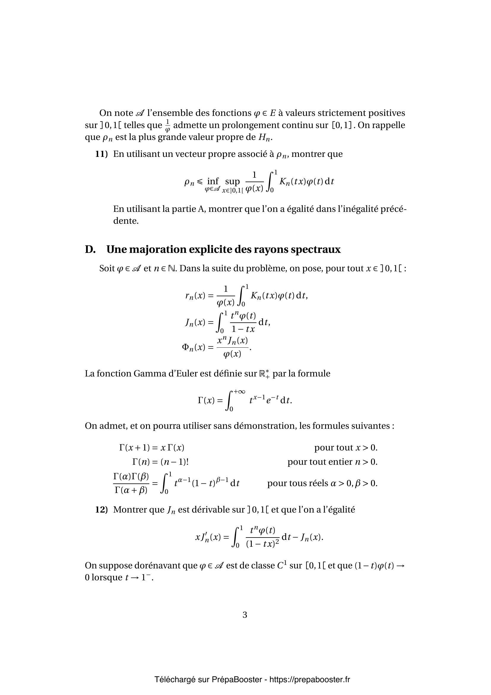 12. Soit $\varphi \in A$ et $n \in \mathbb{N}$. Dans la suite du problème, on pose, pour tout $x \in ]0,1[$ :