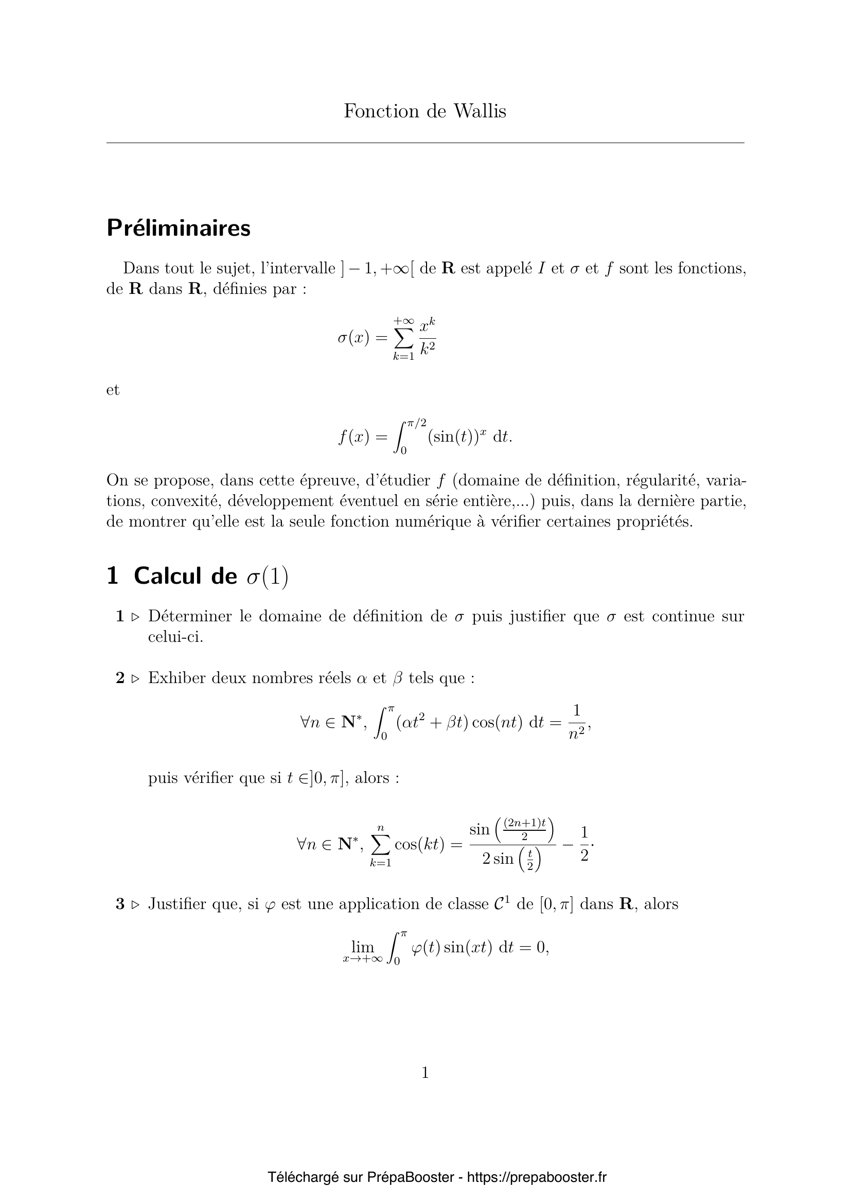 1. Déterminer le domaine de définition de $\sigma$ puis justifier que $\sigma$ est continue sur celui-ci.