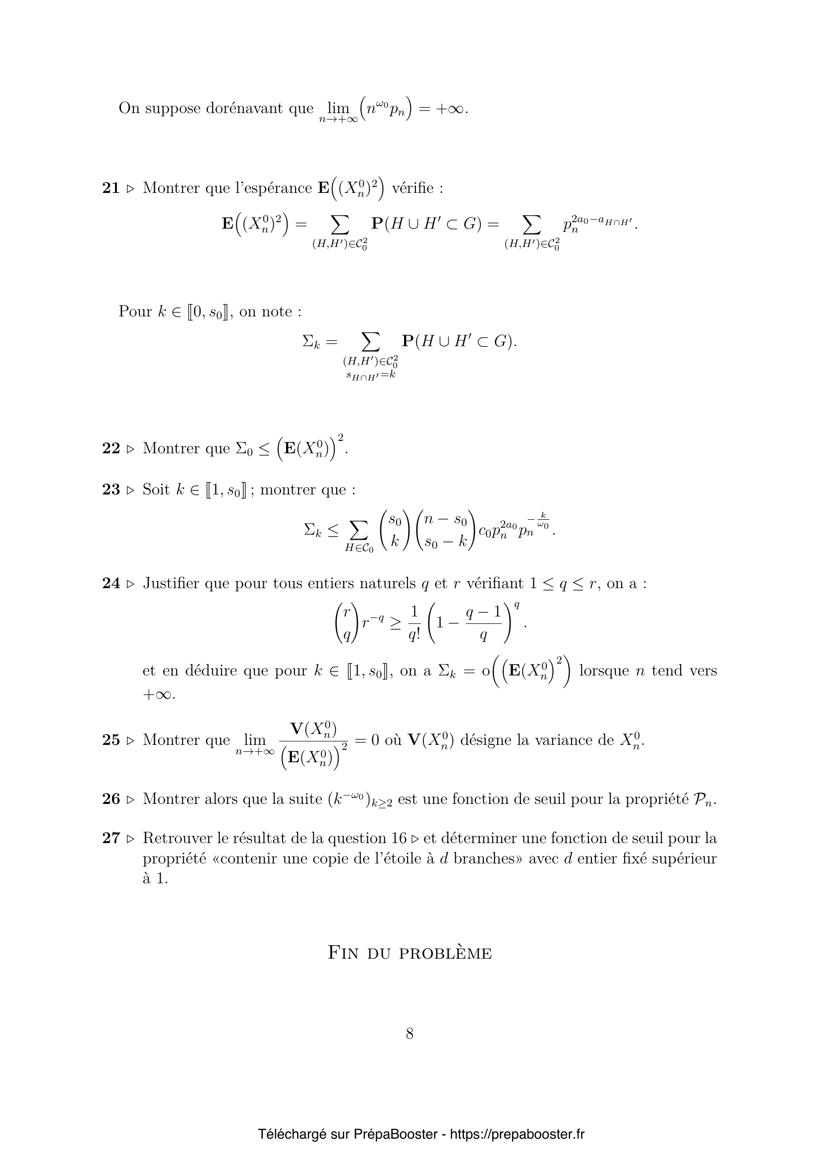 26. 26~Û Montrer alors que la suite \( (n^{-\Theta_0})_{n \geq 2} \) est une fonction de seuil pour la propriété \( \mathcal{P}_n \).