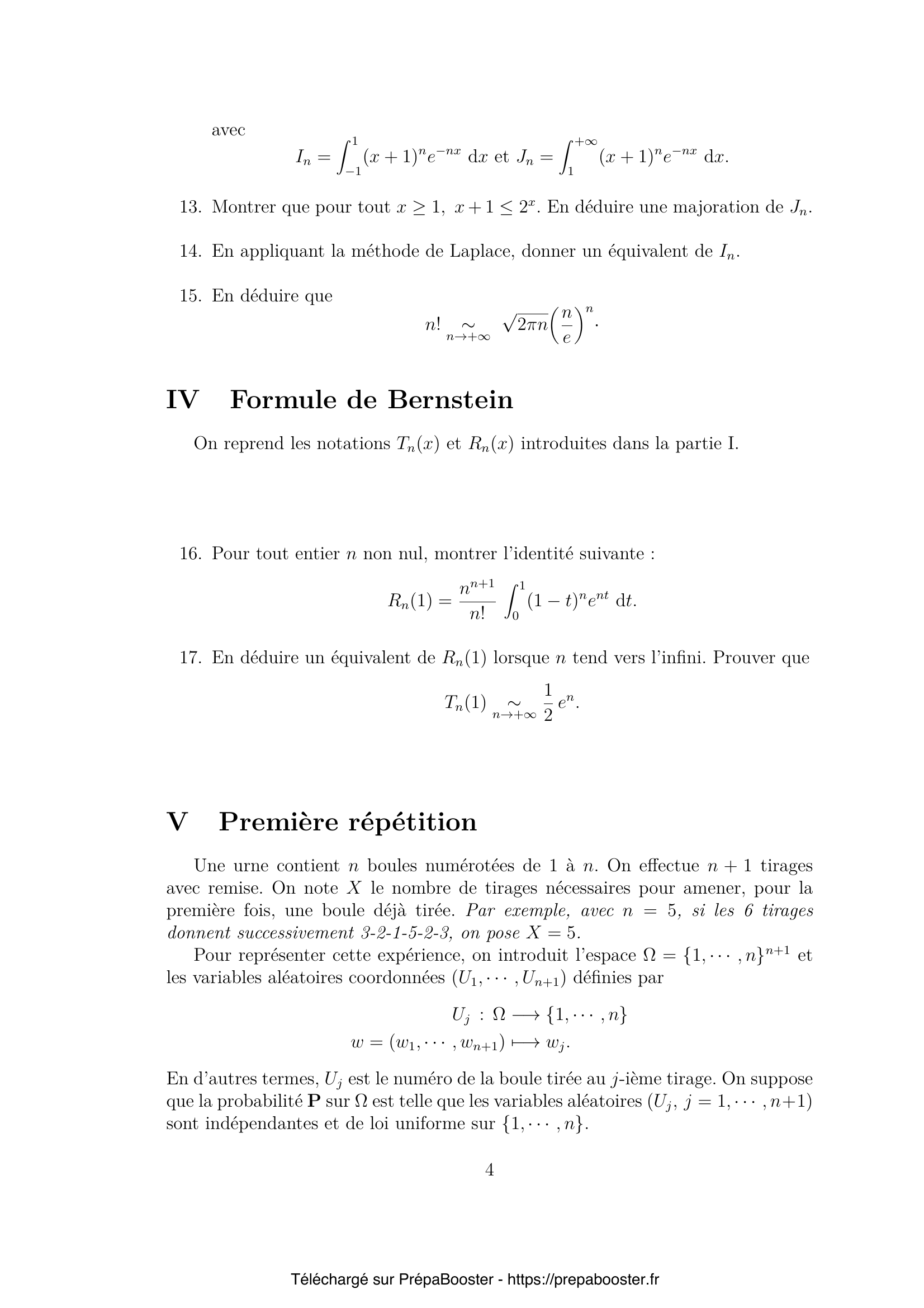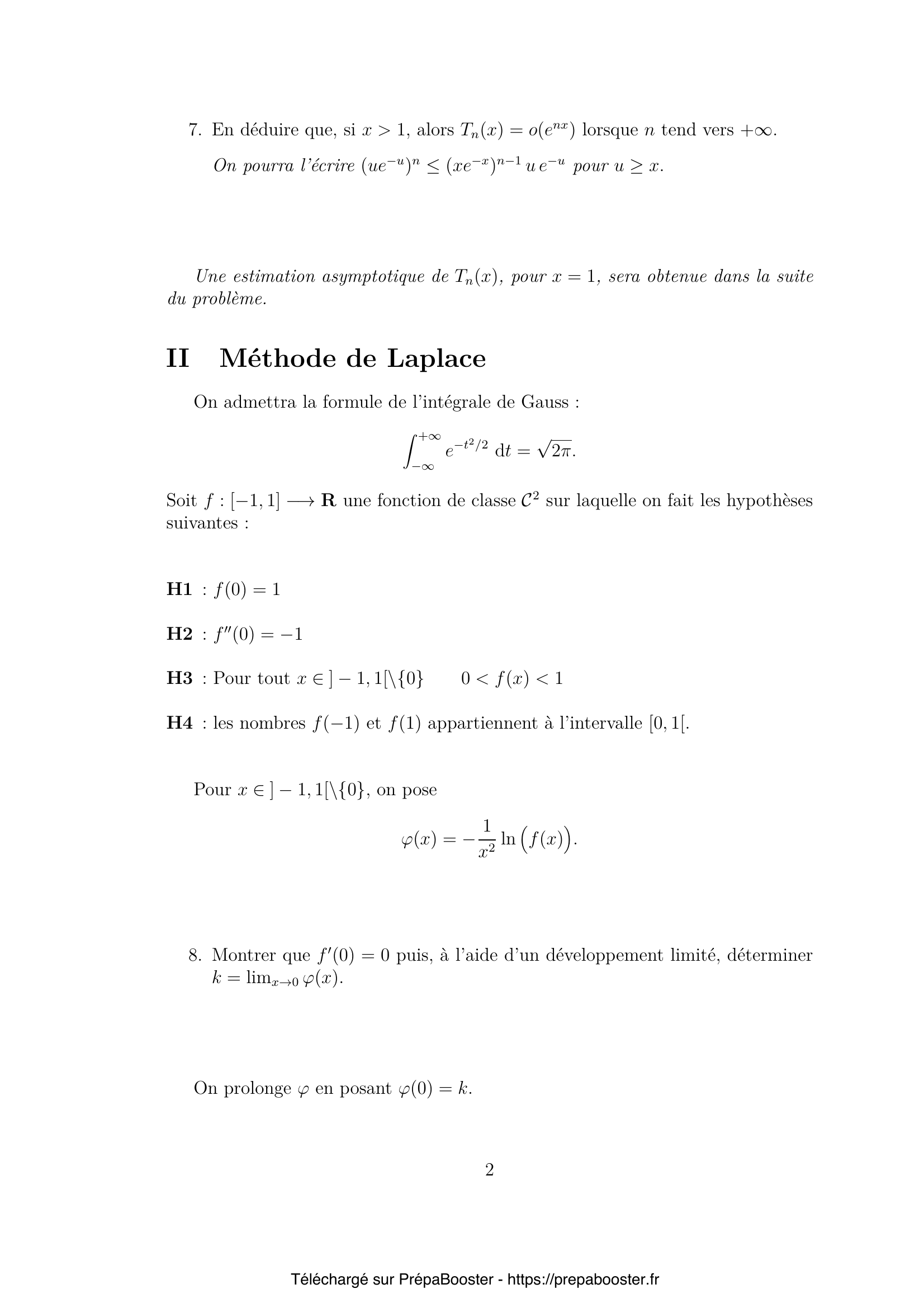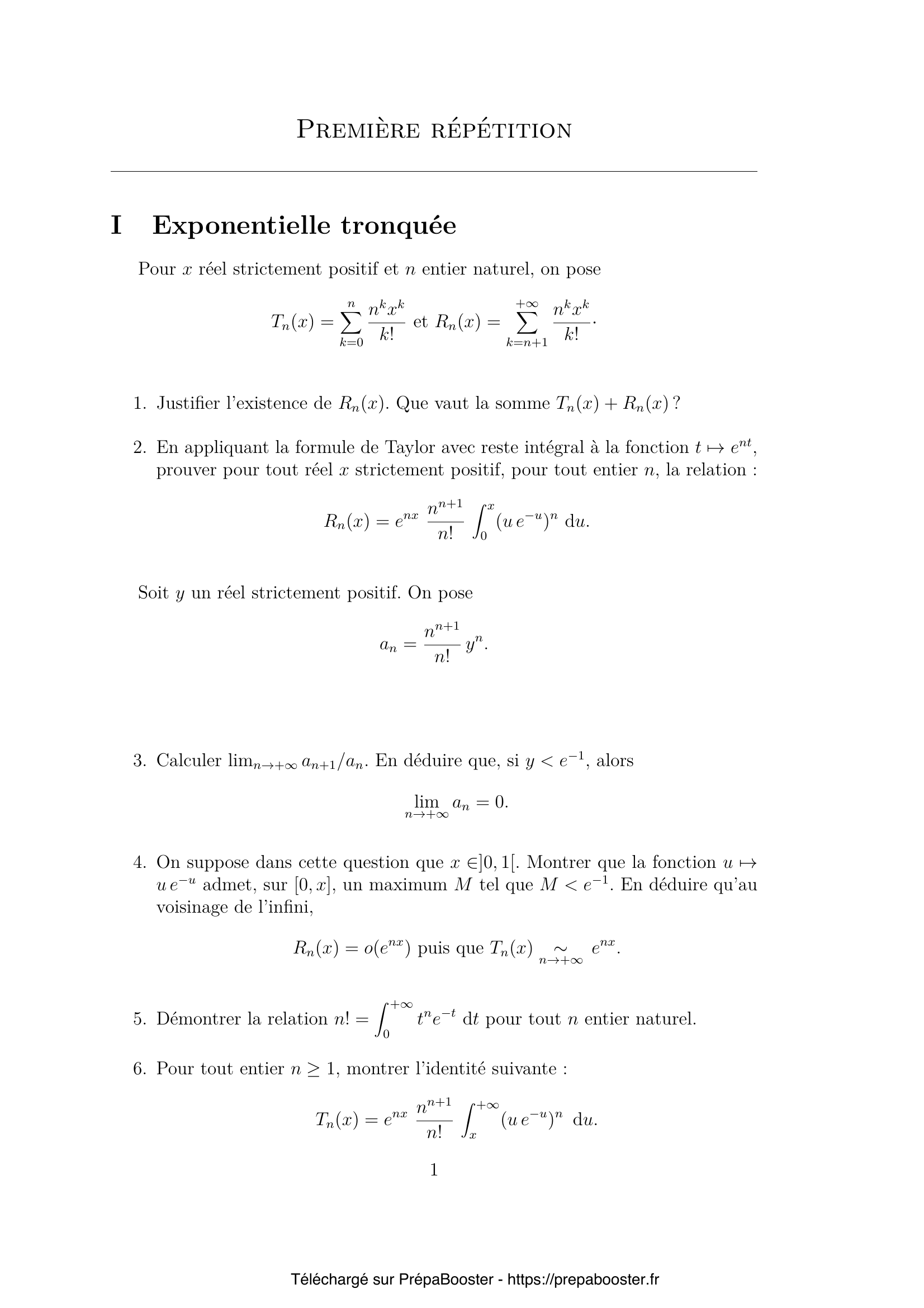 Dans ce sujet, l’étude des restes de Taylor comme \( R_n(x) \) est cruciale pour comprendre le comportement asymptotique des fonctions exponentielles et des intégrales associées. Cela permet notamment d’établir des équivalents et des développements limités, compétences clés en analyse pour les concours. Si tu veux approfondir, débloque les corrigés pour voir les détails des calculs et les astuces méthodologiques !