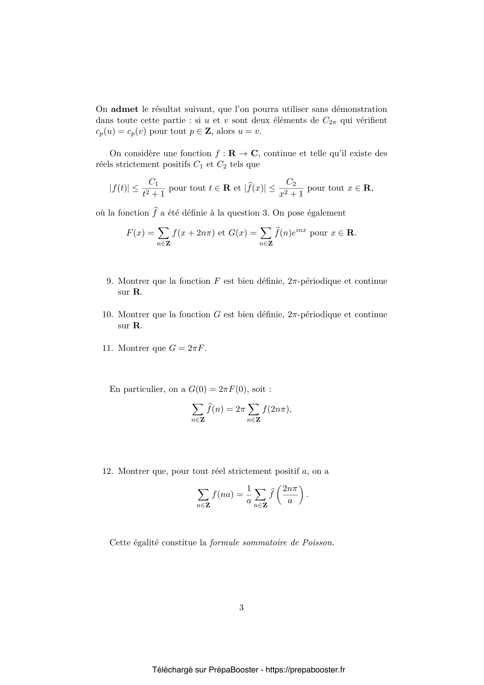 9. Montrer que la fonction \( F \) est bien définie, \( 2\pi \)-périodique et continue sur \( \mathbb{R} \).
