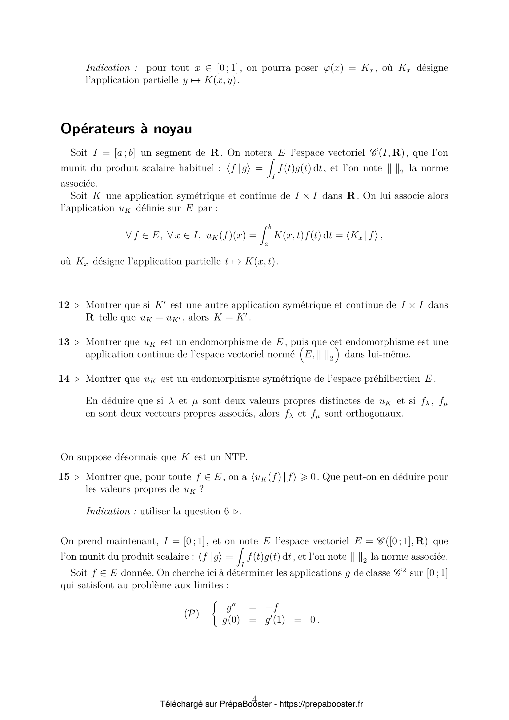 11. Soit le noyau $K: [0;1] \times [0;1] \to \mathbb{R}, (x,y)\mapsto \min(x,y)$. Montrer que $K$ vérifie la propriété (R).\\