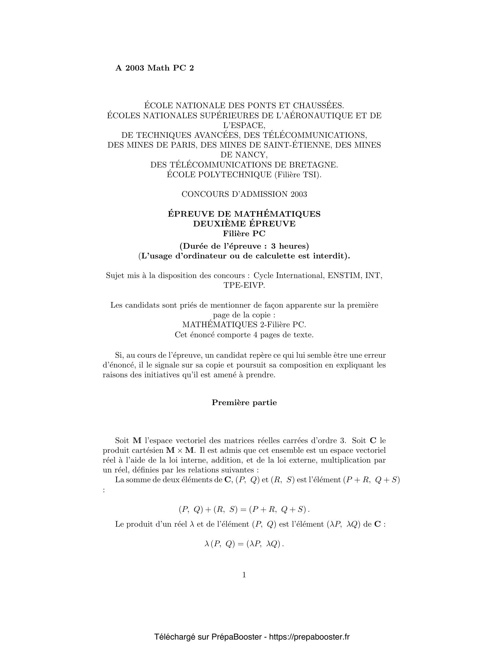 Pour déterminer une droite invariante, il faut chercher un vecteur directeur qui est conservé (ou simplement transformé selon une certaine règle) par l’action de l’application. Cela ramène souvent à la résolution d’une équation vectorielle ou matricielle, traduisant l’invariance recherchée. Dans le sujet Mines-Ponts PSI 2003, cette question fait le lien entre algèbre et géométrie. Pour voir comment structurer ton raisonnement ou t’entraîner sur ce type d’exercice, je t’invite à débloquer les corrigés sur Prépa Booster.