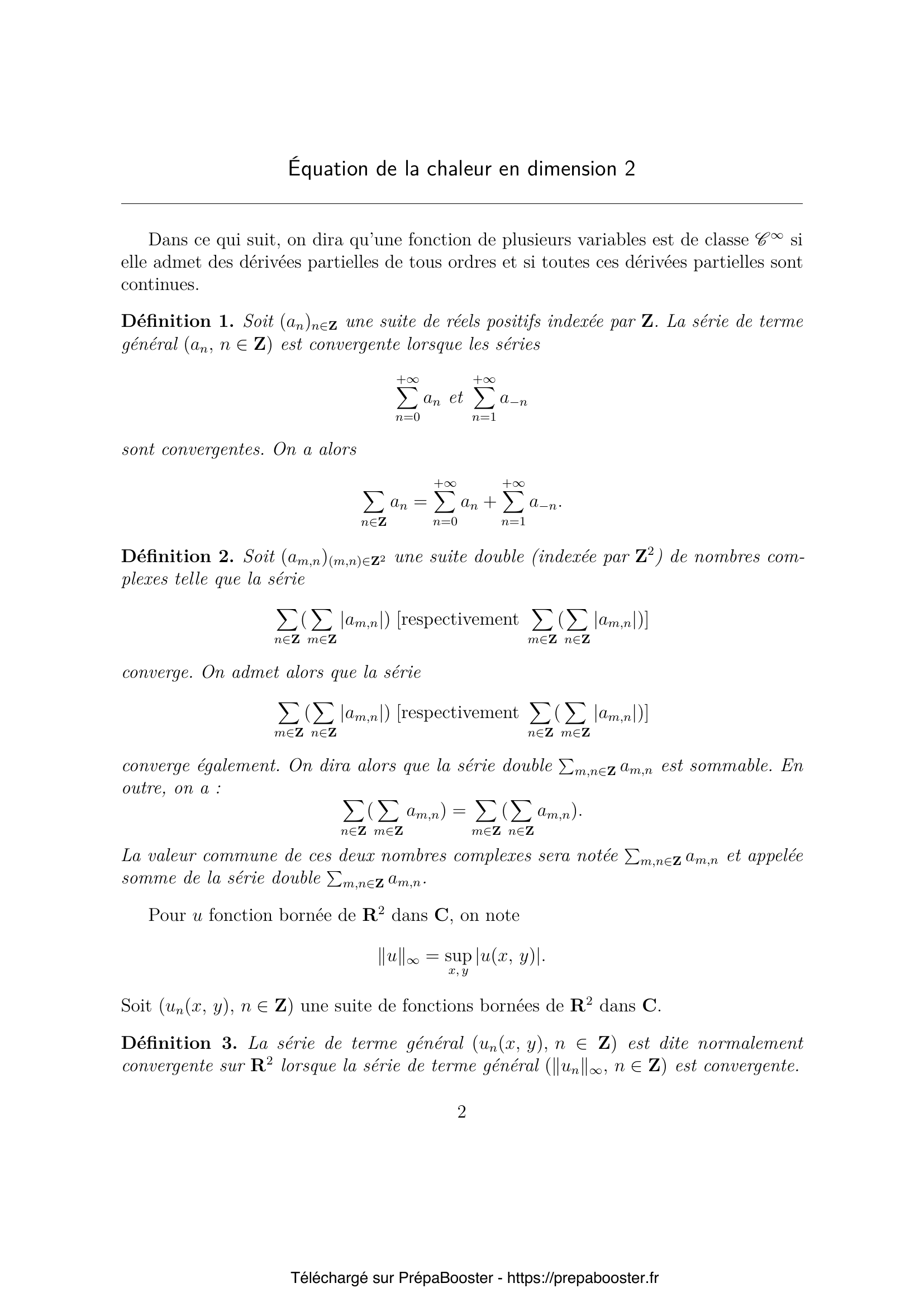 C’est un classique des concours ! L’étude de la régularité te fait manipuler l’analyse réelle et complexe, mais aussi tous les outils de convergence de séries de fonctions. Cela te permet de montrer que des objets définis par séries (comme les fonctions de plusieurs variables périodiques) sont bien des fonctions régulières. Ces points de rigueur font souvent la différence en maths Mines-Ponts. Pour t’entraîner sur ces raisonnements, tu peux retrouver des corrigés détaillés sur Prépa Booster.