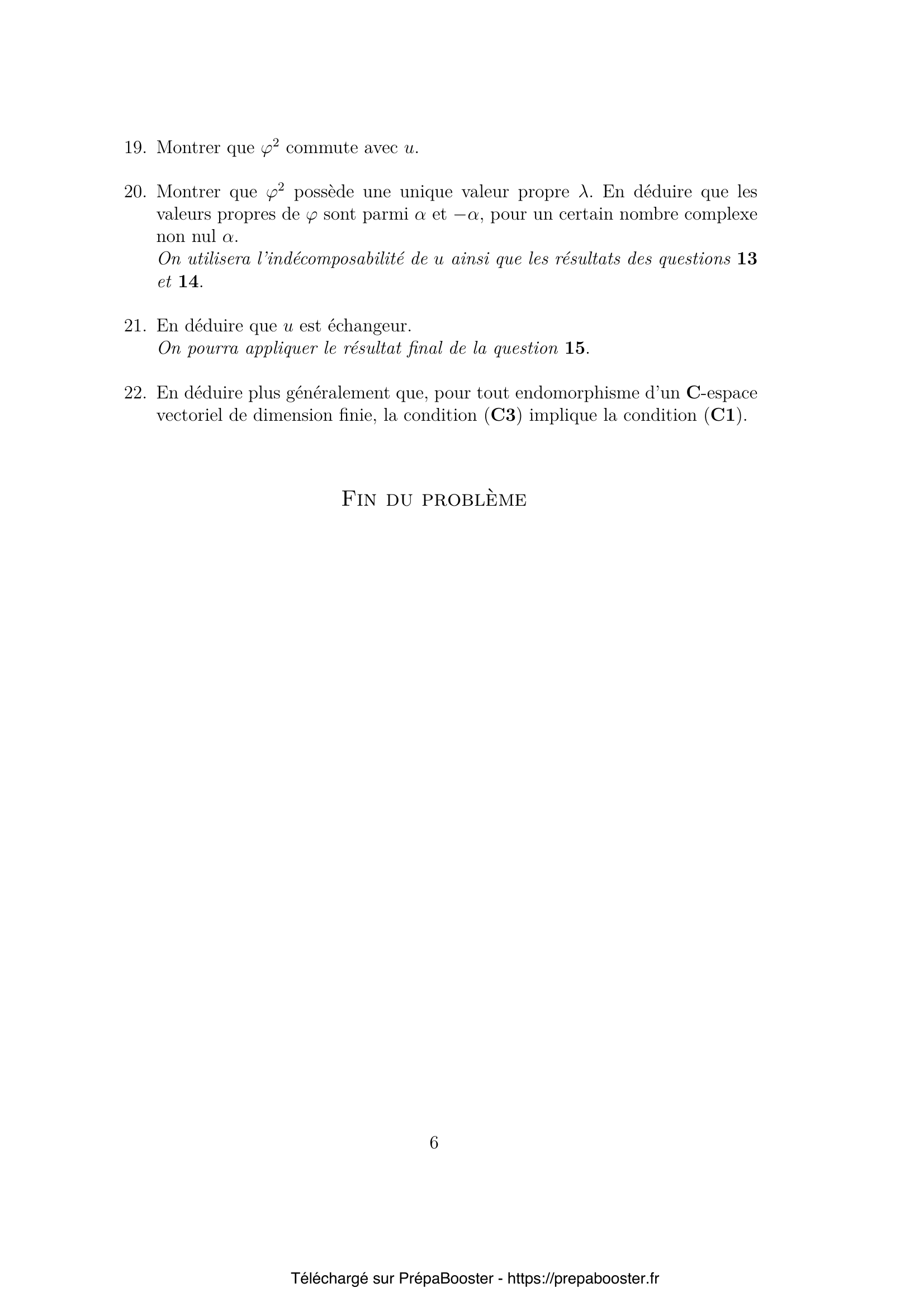 22. En déduire plus généralement que, pour tout endomorphisme d’un C-espace vectoriel de dimension finie, la condition (C3) implique la condition (C1).}