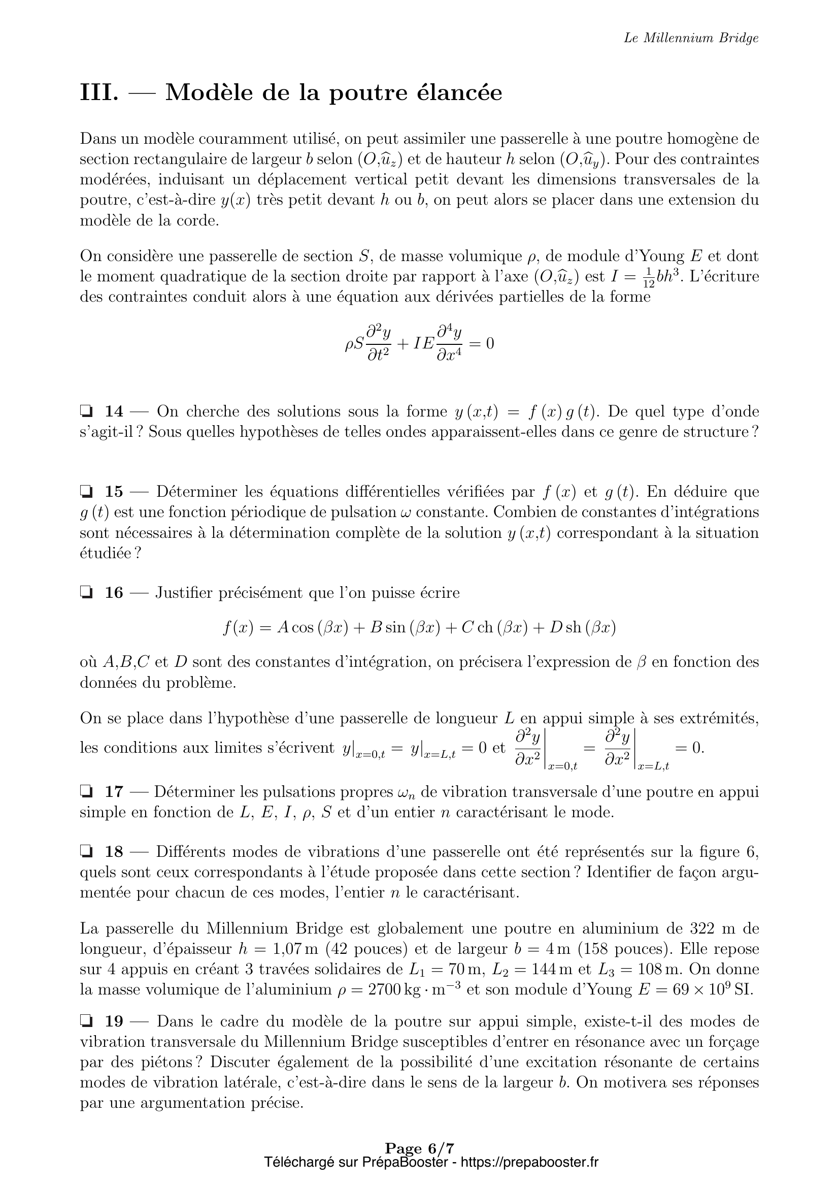 14. On cherche des solutions sous la forme $y(x,t) = f(x)g(t)$. De quel type d’onde s’agit-il ? Sous quelles hypoth\`eses de telles ondes apparaissent-elles dans ce genre de structure ?