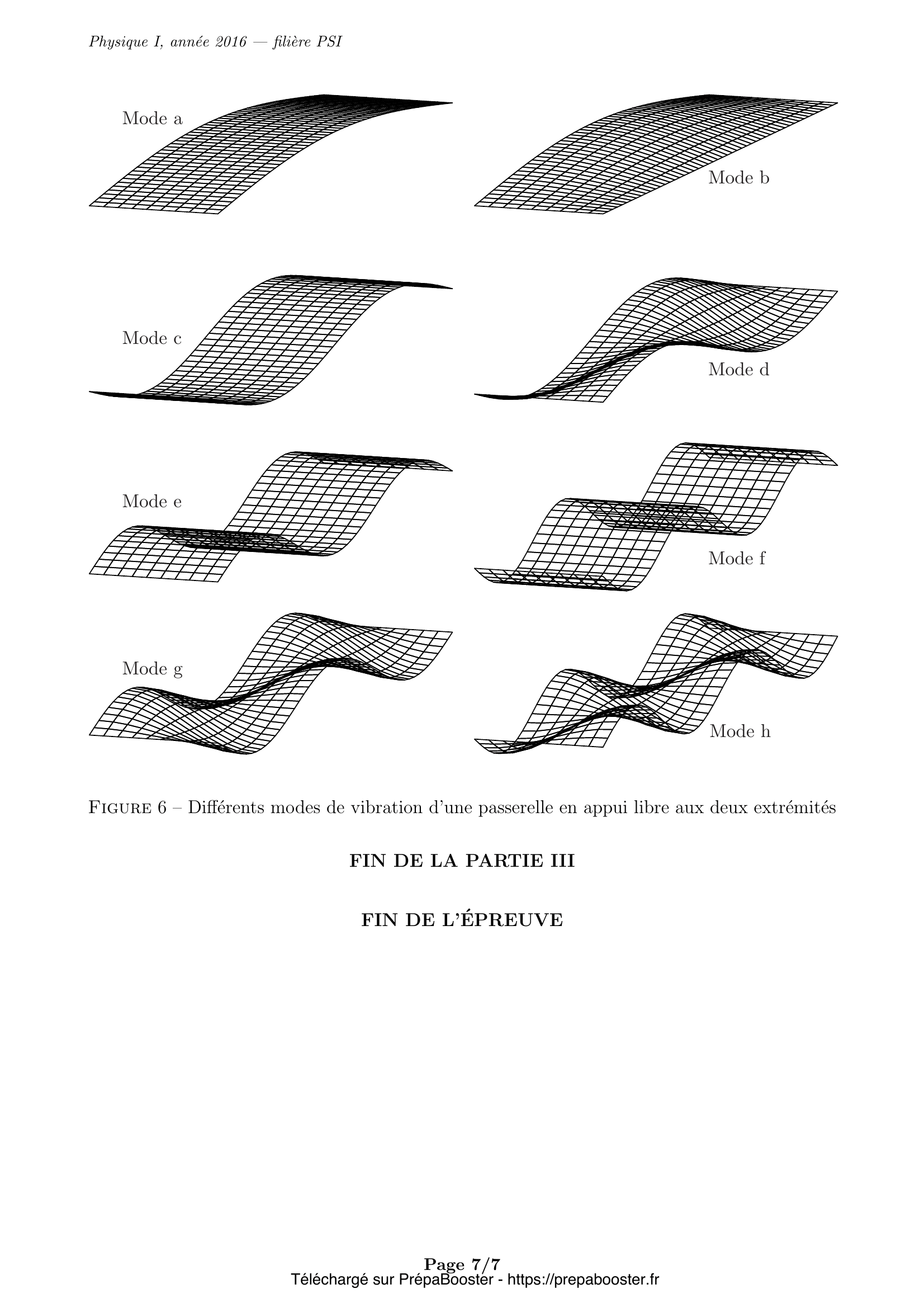 18. Diff\’erents modes de vibrations d’une passerelle ont \’et\’e repr\’esent\’es sur la figure 6, quels sont ceux correspondants \`a l’\’etude propos\’ee dans cette section ? Identifier de fa\c{c}on argument\’ee pour chacun de ces modes, l’entier $n$ le caract\’erisant.