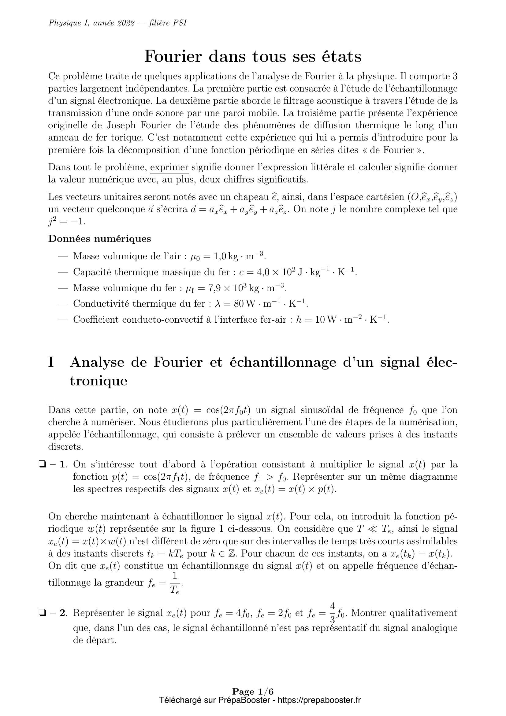 Ce sujet de Physique du concours Mines Ponts PSI 2022 correspond aux épreuves disponibles sur le site officiel du concours Mines Ponts. Retrouve sur Prépa Booster toutes les ressources nécessaires pour ta préparation, y compris les corrigés détaillés.