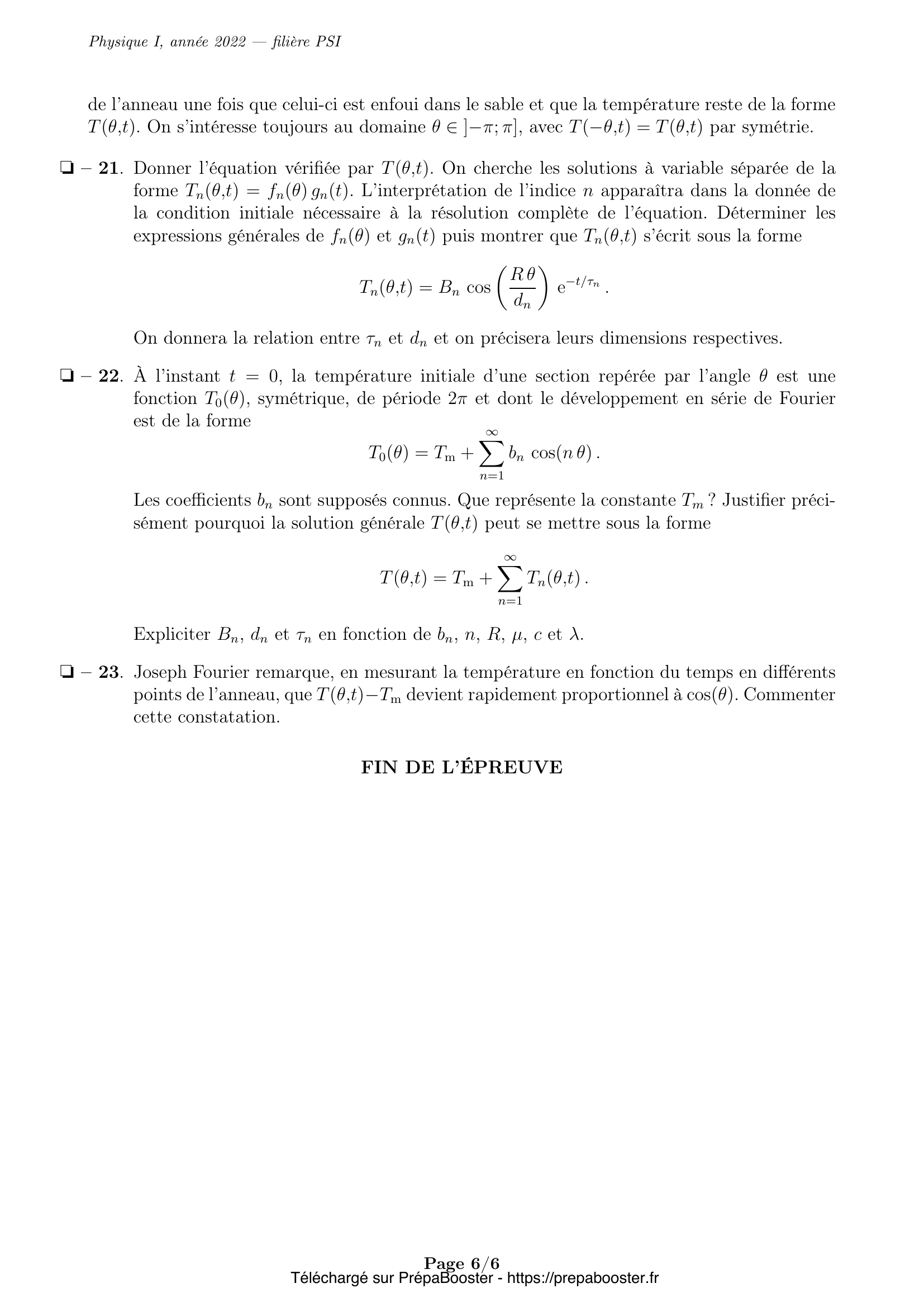 Énoncé de l’épreuve Mines Ponts Physique PSI 2022