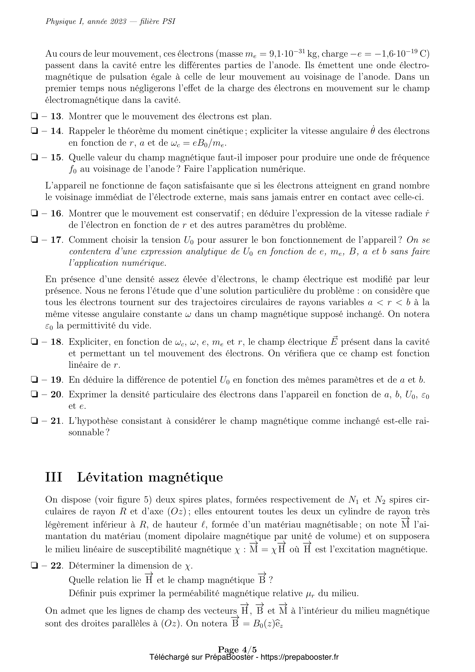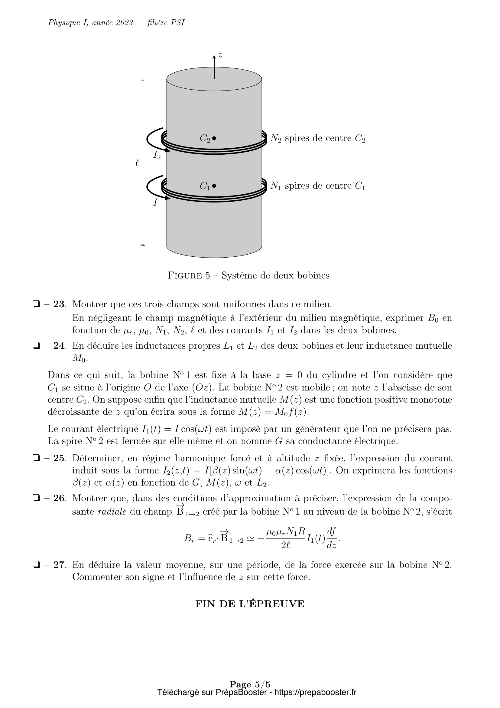 Énoncé de l’épreuve Mines Ponts Physique PSI 2023