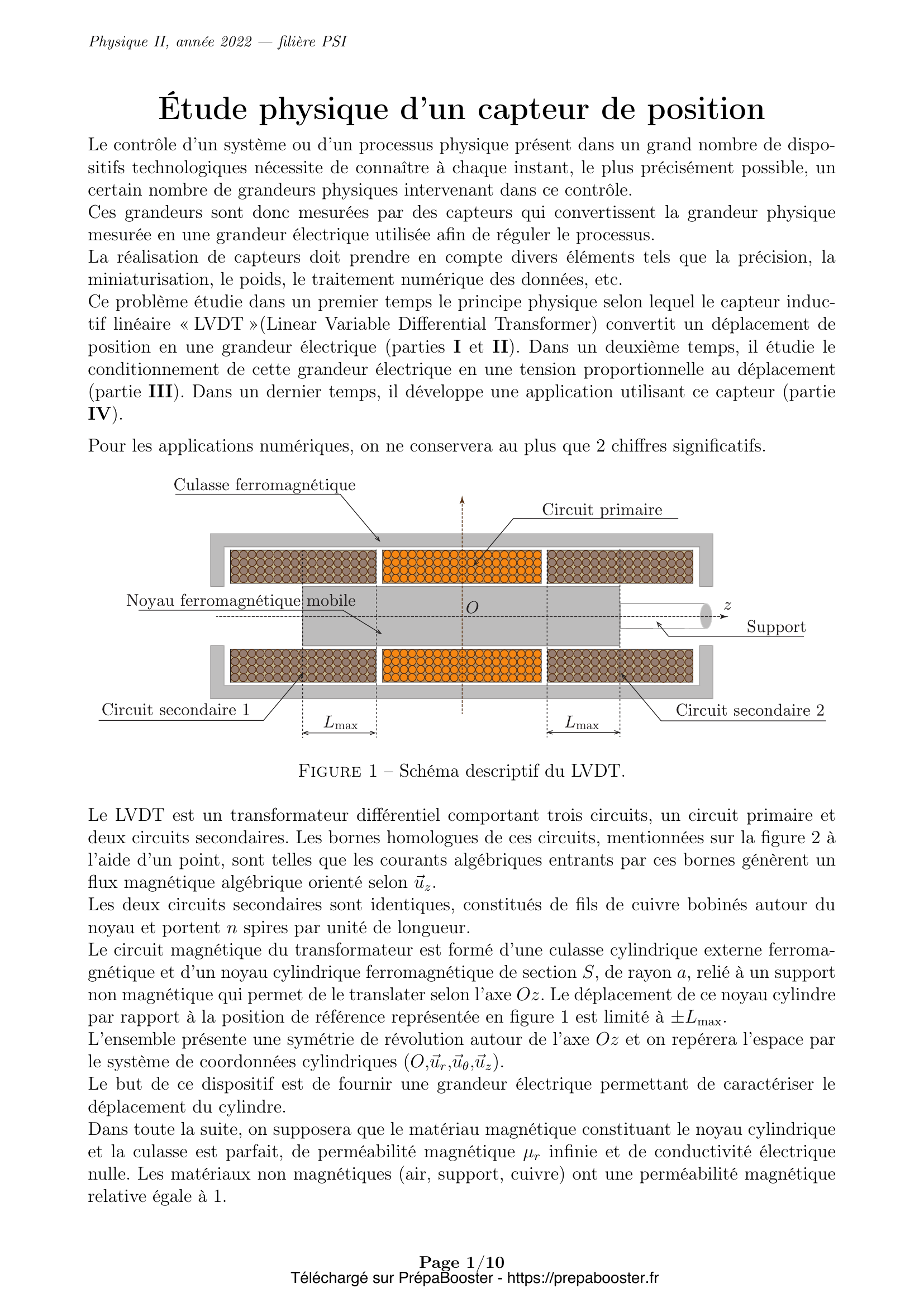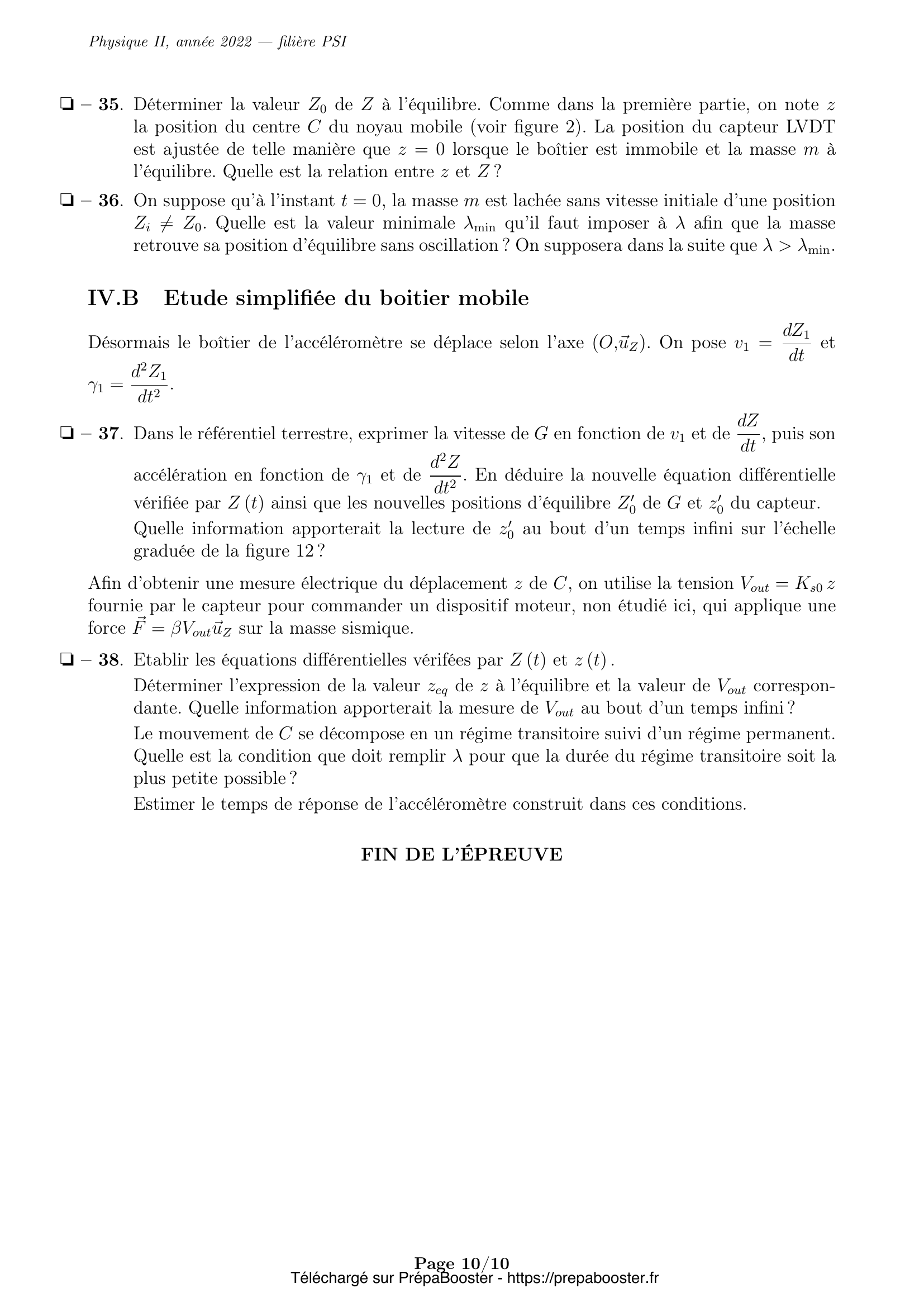Énoncé de l’épreuve Mines Ponts Physique PSI 2022
