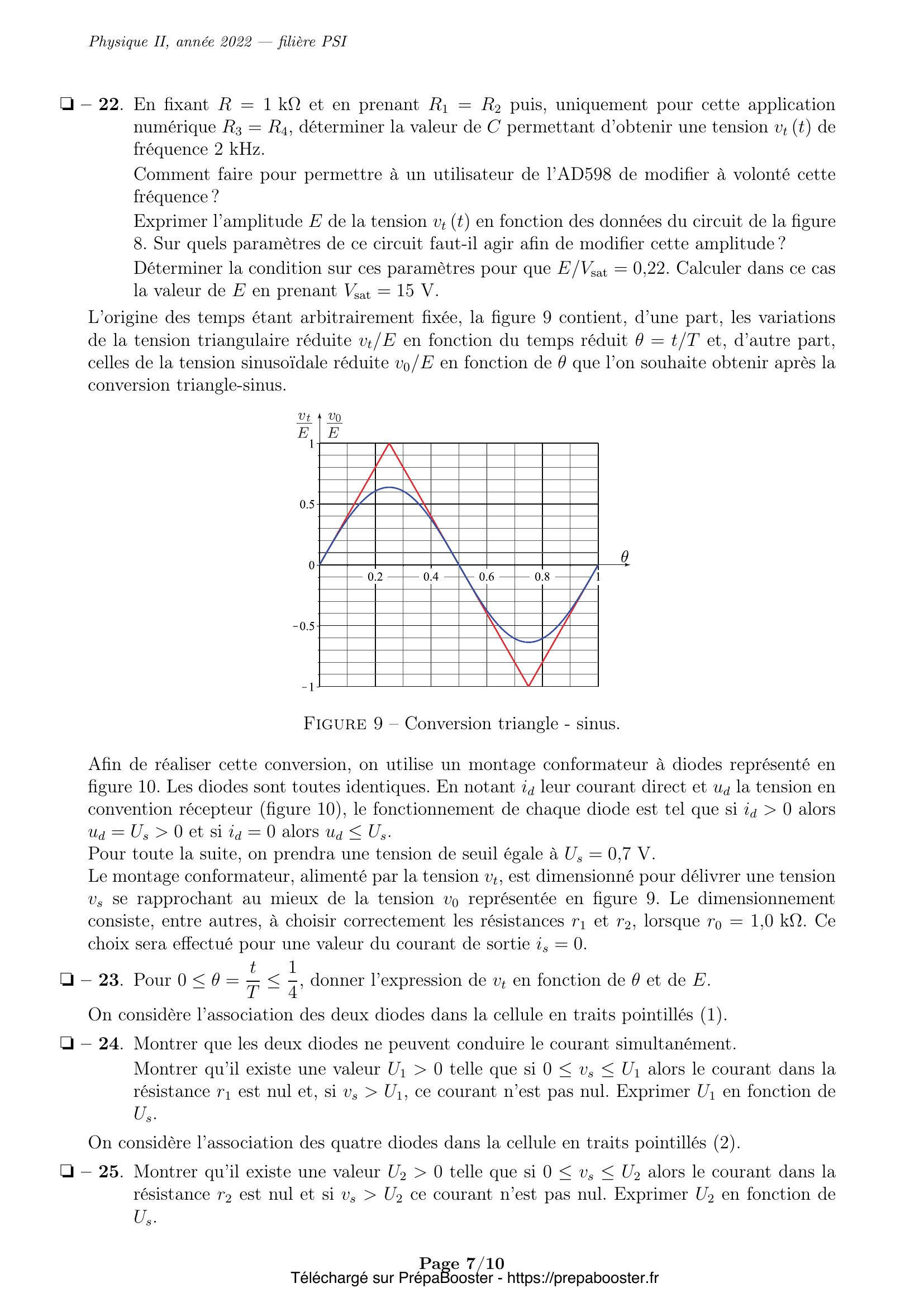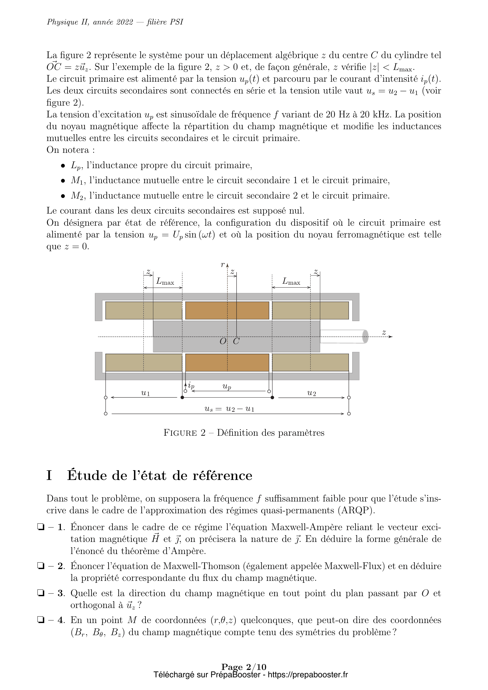 Énoncé Mines Ponts 2022 – PSI – Physique 2