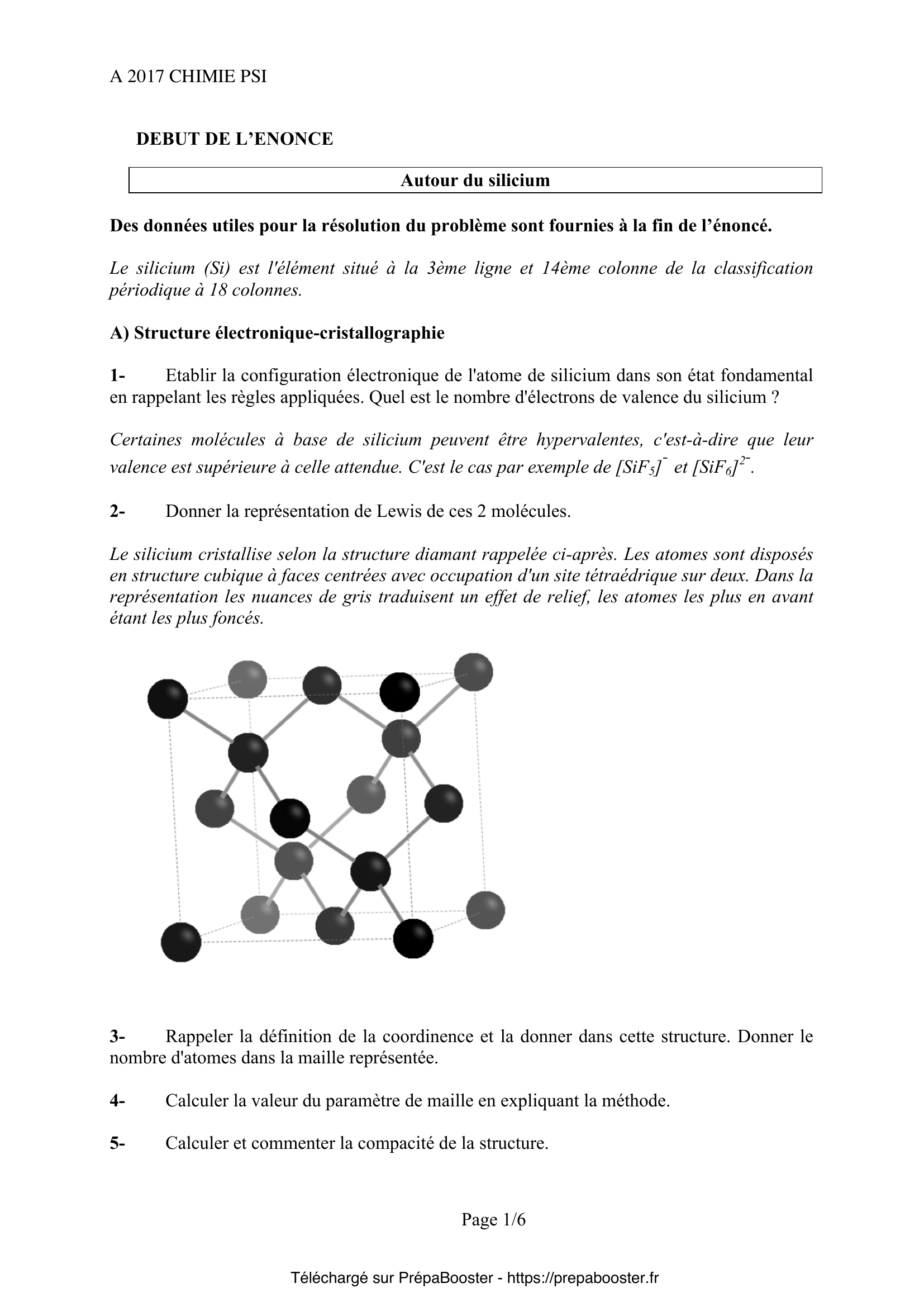 Énoncé Mines Ponts 2017 – PSI – chimie 1